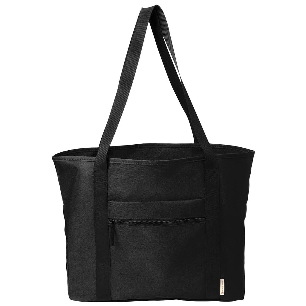 Port Authority Deep Black C-FREE Recycled Tote with your custom logo design is a way to have a great tote and do well for the planet. The neutralized total carbon footprint of anything with the C-FREE certification means you can feel good about carrying the 1,000 plus cubic inch tote that is great to serve as a briefcase, purse, diaper bag, and more. Place an order today.Highlights