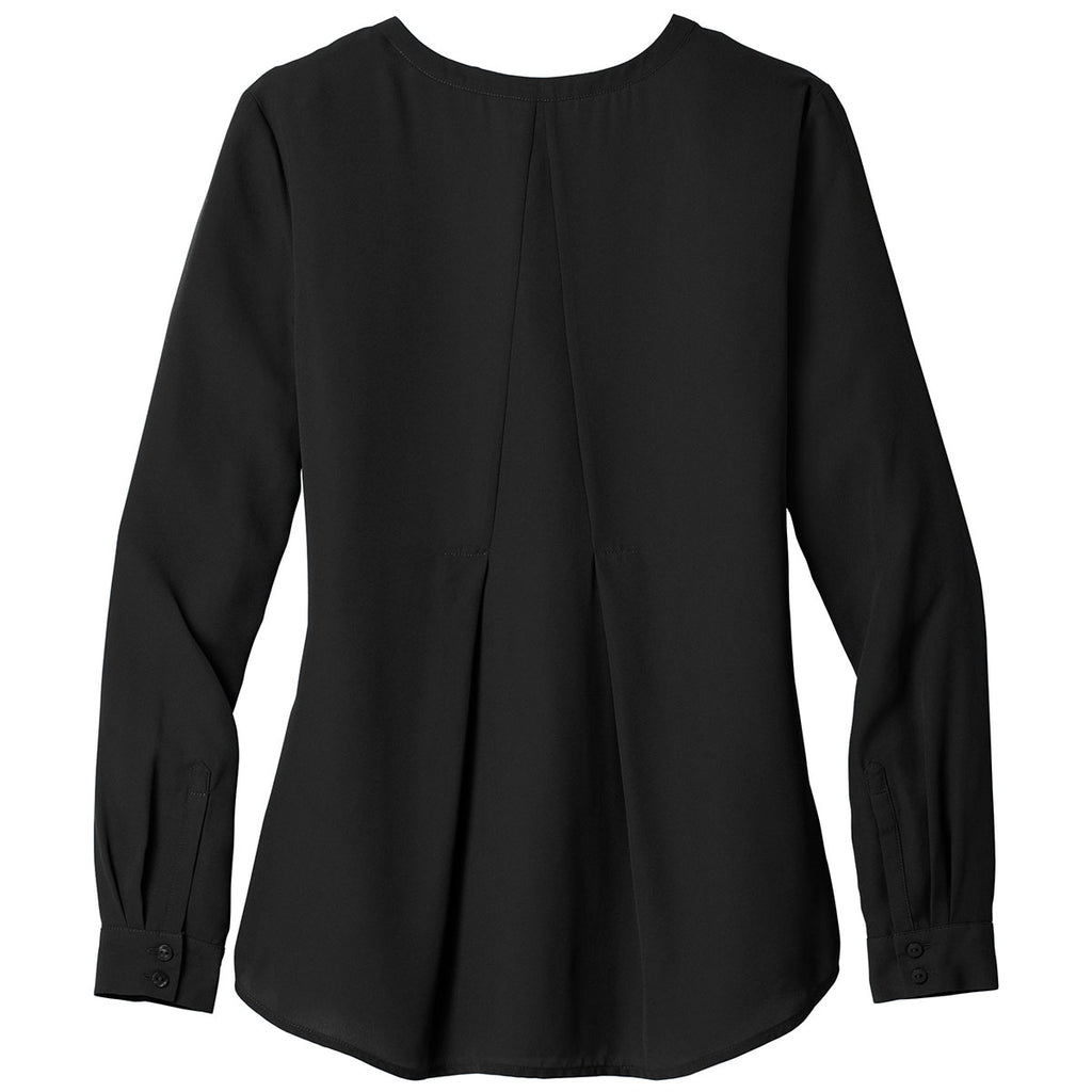 Promote your company in the community by making the custom logoed Port Authority Women's Black Long Sleeve Button-Front Blouse employee apparel for the women on your corporate team. Designed with black pleat detail, the versatile blouse works as well at industry trade shows, as it does when you sport it at corporate celebrations. The enticing flow of the blouse will spark interest in your brand at business seminars and conferences. Make sure to attach your company logo on the embroidery area to reach more potential customers. Rugged polyester resists rips and tears to give you go to clothing for years to come.Highlights