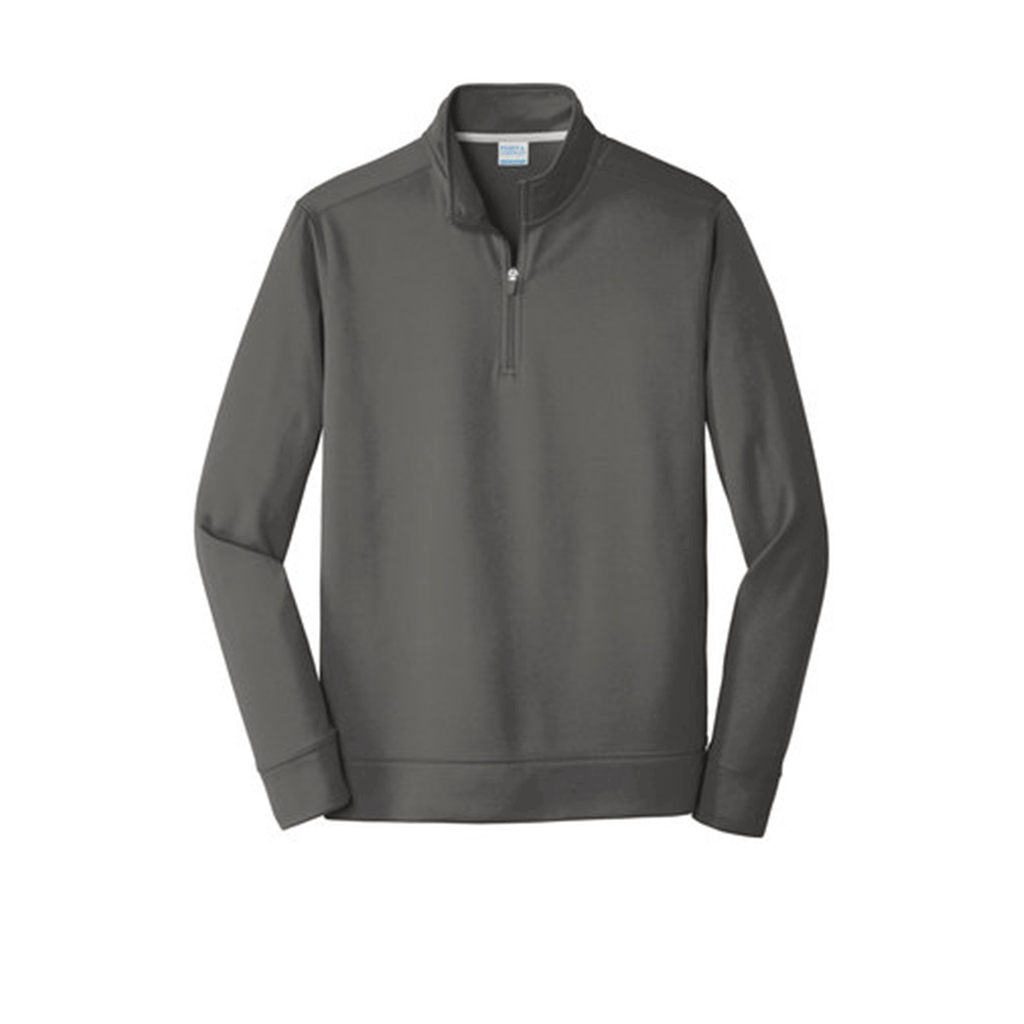 Before the next corporate recruiting event, give every member of your team the Port & Company Men's Charcoal Performance Fleece 1/4-Zip Pullover Sweatshirt. Make sure to attach a custom logo on the large imprint area to leave a positive impression on the job candidates you want to hire. Proprietary Dry Zone technology ensures maximum comfort by wicking away moisture. One-hundred percent durable polyester resists rips and tears to ensure years of high performance use. Self-fabric hem and cuffs create a professional appearance for attending industry trade shows. Wear the versatile pullover as an outer layer during the warmer months of the year.Highlights
