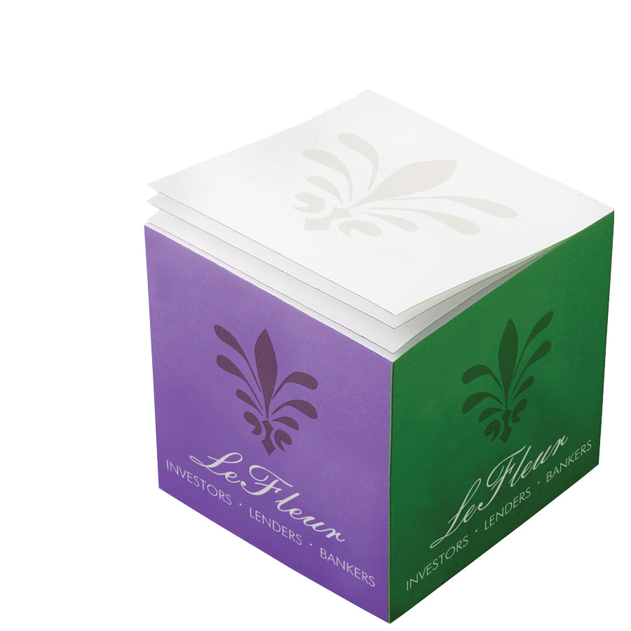Build brand recognition with a 5-dimensional marketing tool for your company! Case in point: the Post-It White Custom Printed Notes Cube - 3.38" x 3.38" x 3.38". This cuboid-shaped notepad features photo-quality print of your custom artwork on four sides. It guarantees exposure of your logo and makes it impossible for viewers to ignore your message. They make a perfect addition to any marketing toolbox and promise a fresh, new impression with every note pulled out!The minimum order for this product is 500 pieces.