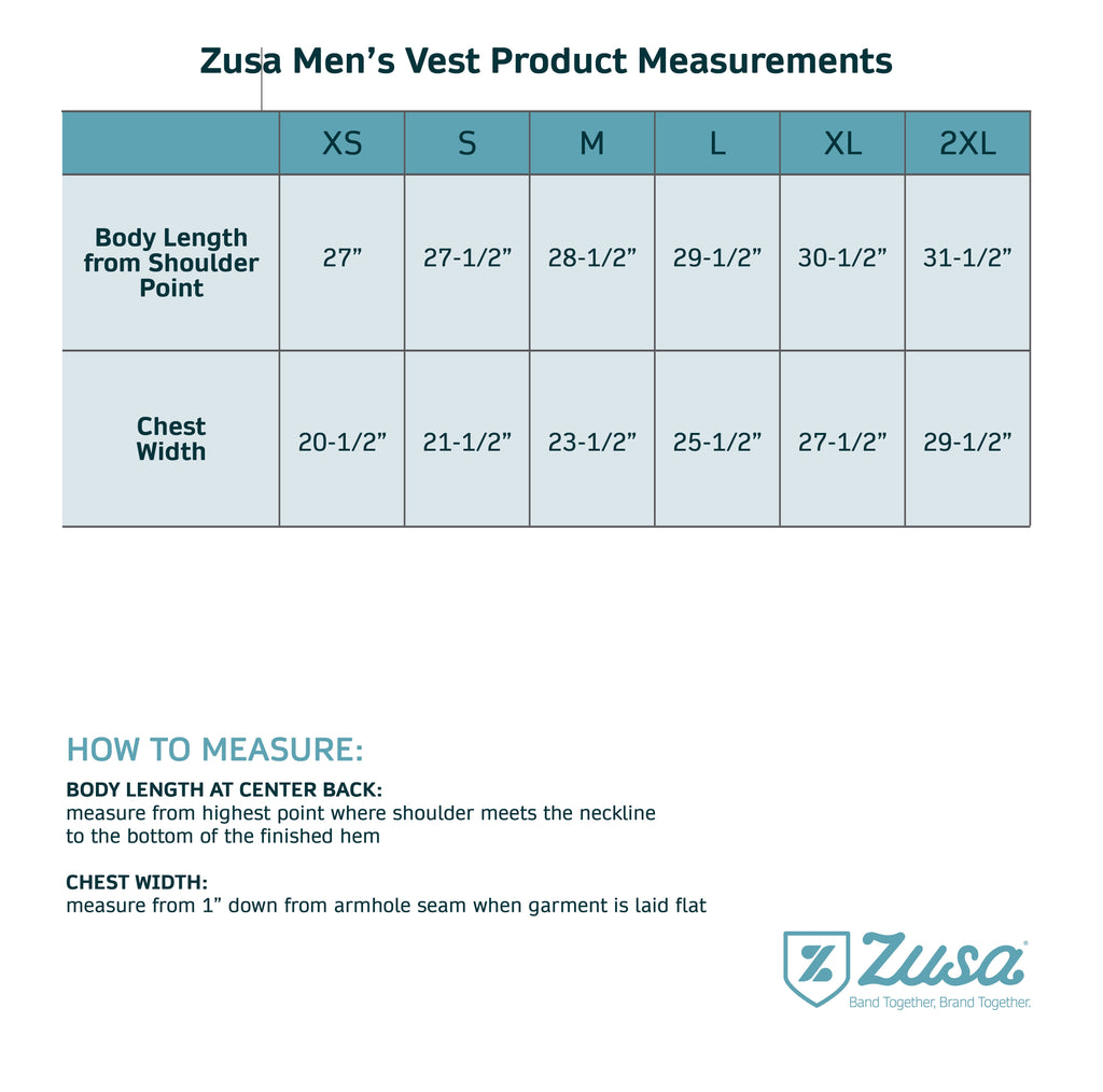 The Zusa Wanderlust Vest provides warmth, comfort, and style all in one! This custom sustainable vest layers effortlessly over your favorite layers, is great for transitioning from season to season, and was made with your adventures in mind. Stay warm and dry, the corporate Zusa vest features a waterproof and wind-resistant exterior, and your custom logo will have the spotlight on the chest or back yoke. Our favorite part? These logo-branded sustainable vests are made with 9 recycled water bottles for the women's style, and 11 recycled water bottles for the men's style. Great style and a great cause, all in one piece; shop corporate sustainable vests today with Zusa!