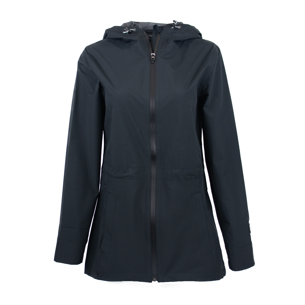 The custom embroidered Zusa Women's North Shore Rain Jacket will battle the elements for you. Whether your team is visiting job sites, commuting, or traveling for business, this custom rain jacket keeps wind and water out using seam-sealed technology and laminated mechanical stretch fabric. The corporate Women's North Shore Jacket also has a draw-cord waist so you get just the right fit. We'll embroider your company's logo on this carbon-neutral jacket made from recycled materials, and you'll have a sustainable, stylish, and functional corporate gift that shows off your brand, rain or shine.