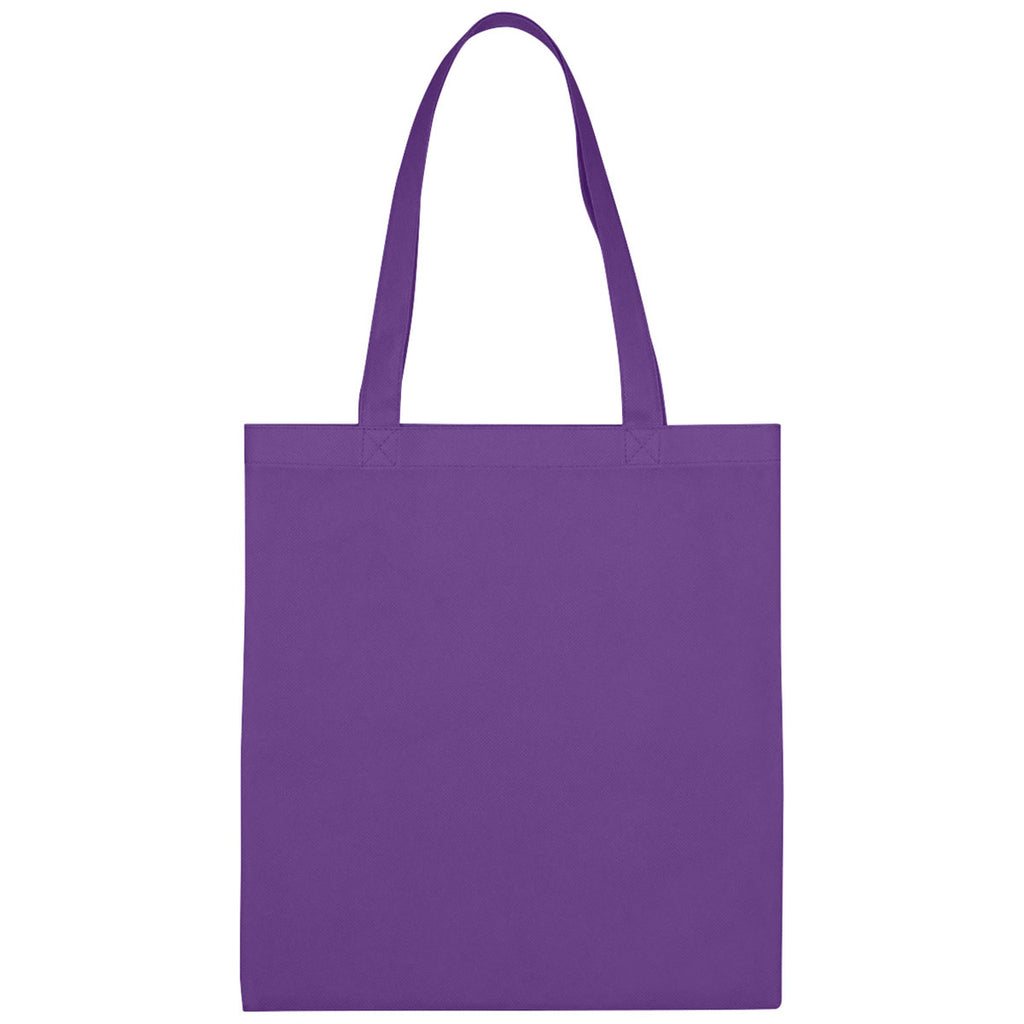 Try a corporate logo on the Hit Purple Non-Woven Economy Tote Bag to make carrying items a breeze for your customers and yourself. These thin, foldable totes are great for trade shows and networking events as they easily hold multiple brochures and business cards. Available in a variety of bold colors, your logo will pop.