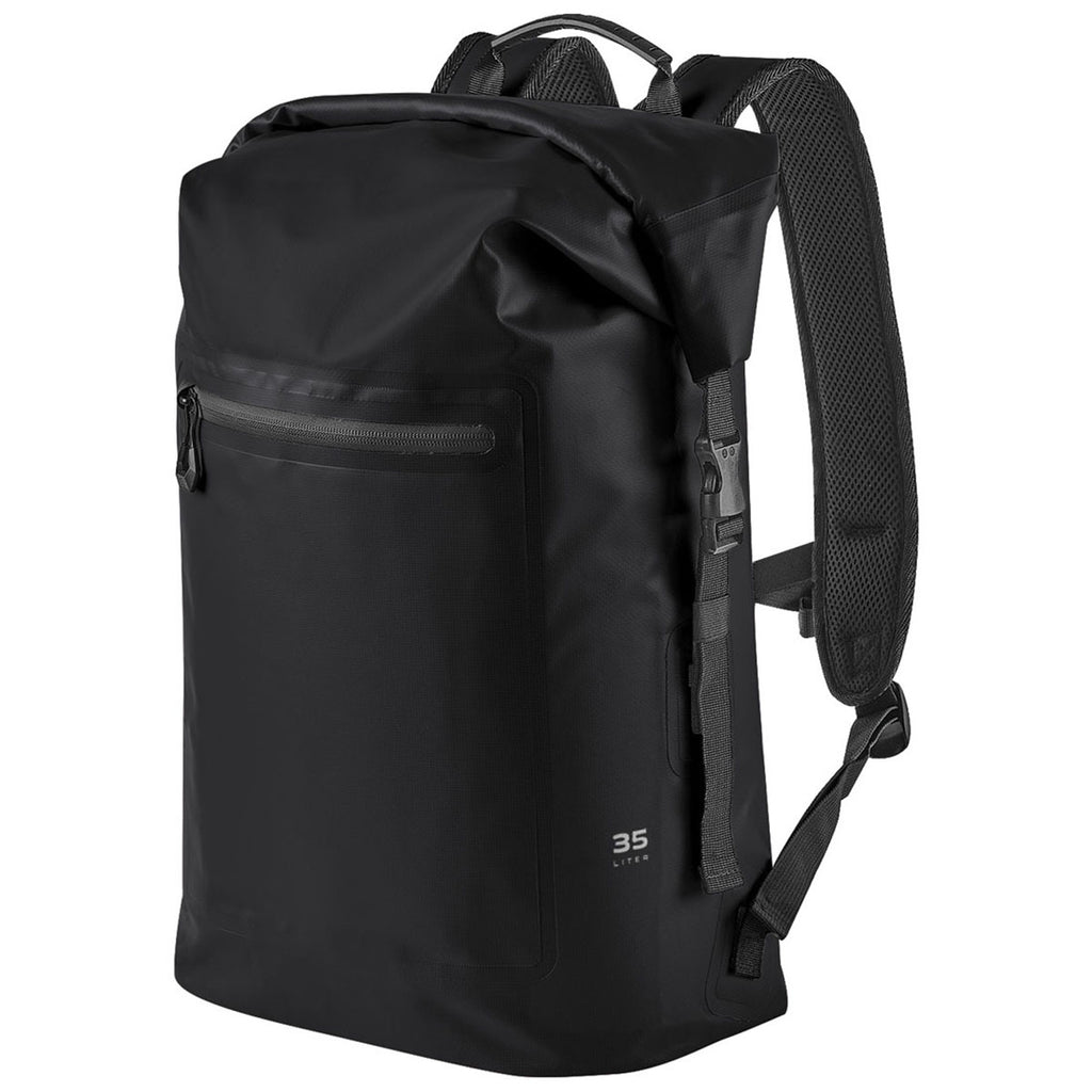 The Stormtech Black/Black Cirrus Backpack 35 is a versatile roll-top day pack that will ensure your company's custom logo always gets the attention it deserves. Great for outfitting every member of your team, this lightweight bag includes awesome extras like contoured padded shoulder straps and plenty of interior compartments for easy organization.