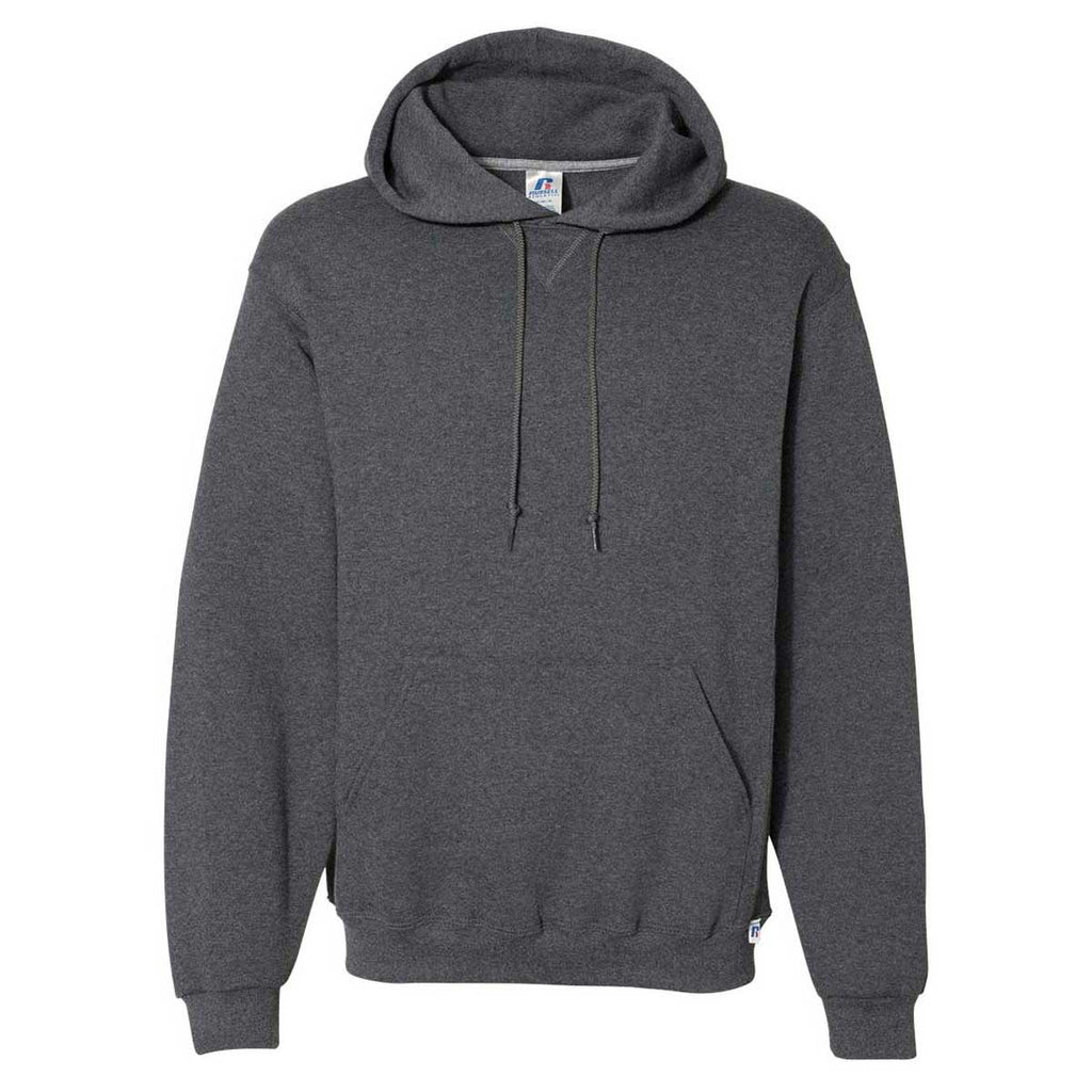 Enjoy the day in a screen print Russell Athletic Men's Black Heather Dri Power Hooded Pullover Sweatshirt. This comfortable, easy to wear pullover sweatshirt has Dri Power moisture management properties with a simple drawstring hood. Add a custom logo to use as warm up gear for athletic teams or to promote your company in a unique way. Great for everything from tailgates to working out to chilling with friends. Add a unique design to give as custom gifts for any occasion or just add to your personal wardrobe.Highlights
