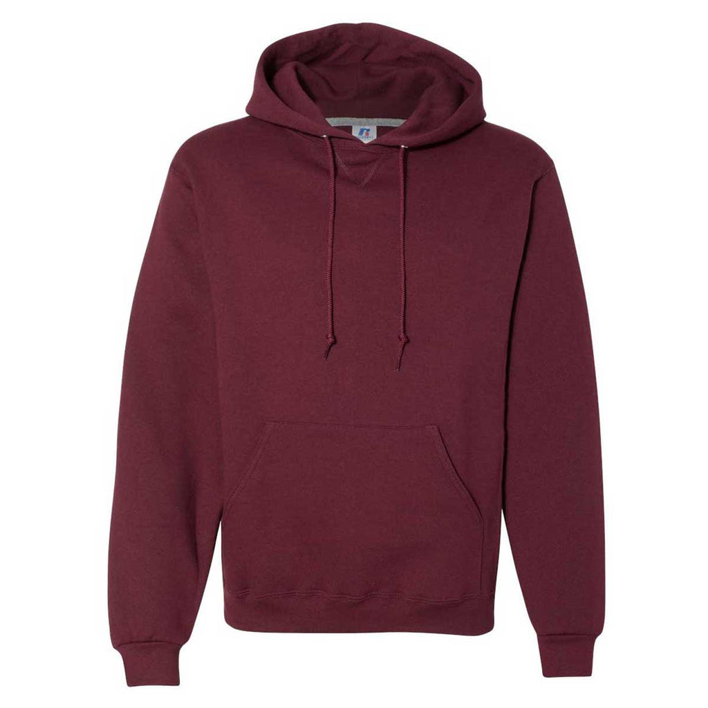 Enjoy the day in a screen print Russell Athletic Men's Maroon Dri Power Hooded Pullover Sweatshirt. This comfortable, easy to wear pullover sweatshirt has Dri Power moisture management properties with a simple drawstring hood. Add a custom logo to use as warm up gear for athletic teams or to promote your company in a unique way. Great for everything from tailgates to working out to chilling with friends. Add a unique design to give as custom gifts for any occasion or just add to your personal wardrobe.Highlights