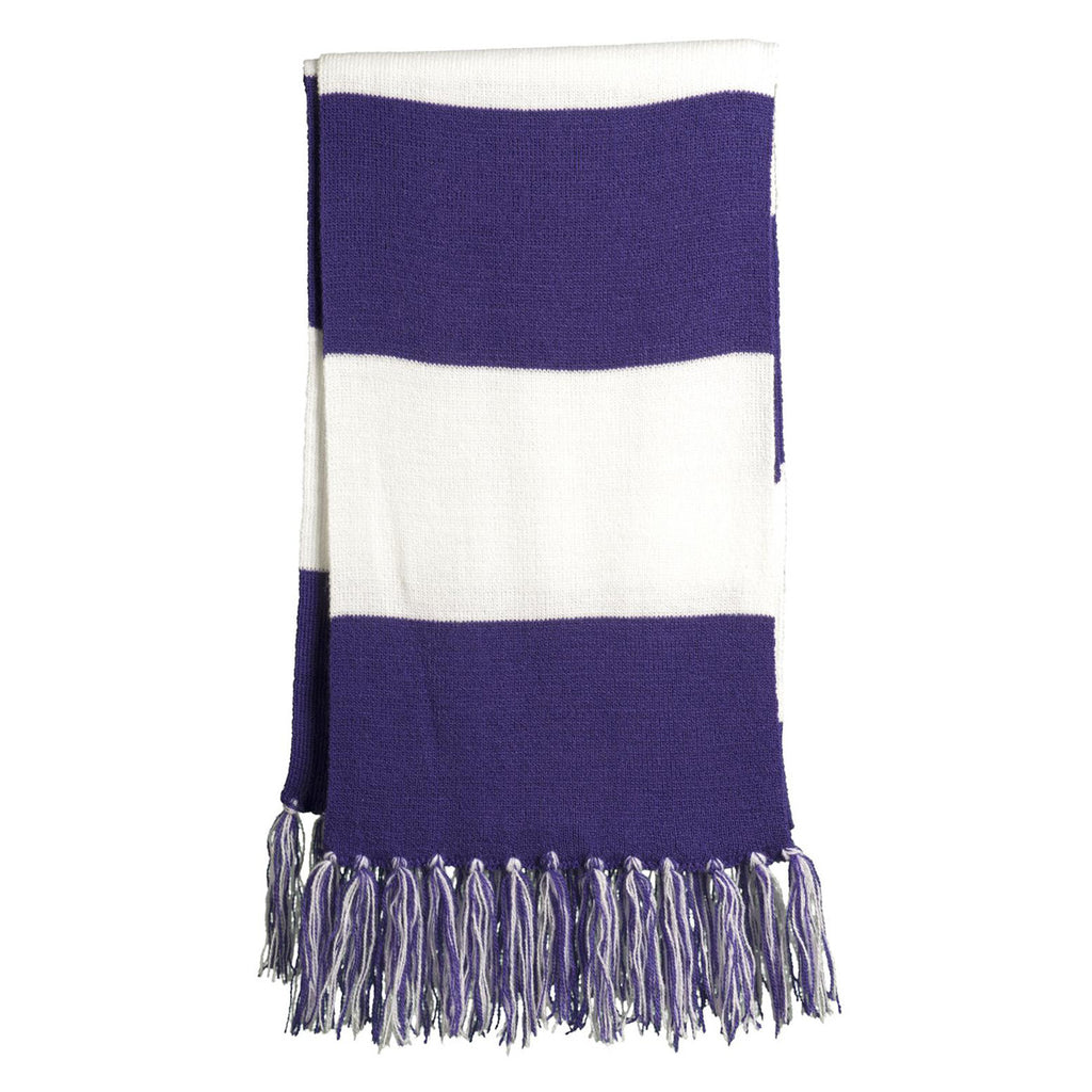 What makes a great scarf? You'd think that we'd say the usual things: warmth, attractiveness, and style. But you'd be...well, you'd be right, actually. But can you blame us? Comfort, warmth, attractiveness, and style don't always go together in this affordable a package. And when it comes to branding your company with the best possible materials-materials that will actually ensure these Sport-Tek Spectator Purple/White Scarf get worn-well, that's important. It's the difference between effective branding and scarves that end up at the bottom of the bin. Make sure to add your corporate logo to this scarf to make it uniquely branded to suit your corporate swag needs.Highlights