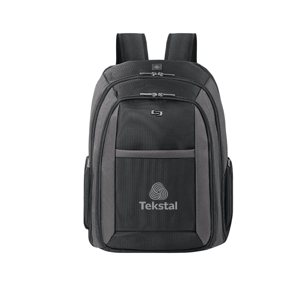 Hand out the whole promotional package with the help of this customizable backpack! Form meets function in this Solo Black Metropolitan Backpack. Constructed from rugged materials, this backpack is designed for the active urban commuter. The zippered compartment is designed to hold most up to 15.6 inches. Customize this bag with your company logo and message and benefit from enhanced brand recognition. Add your company's logo to create a giveaway recipients will love taking home with them.