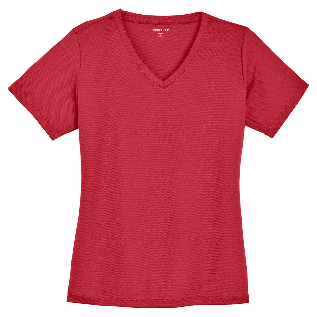 Sport-Tek Women's True Red PosiCharge RacerMesh V-Neck Tee