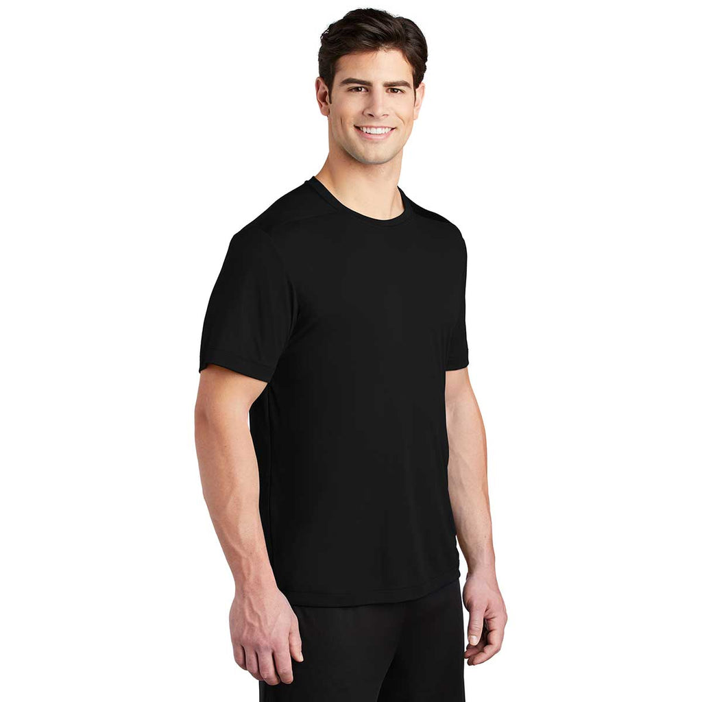 Hit the gym or the driving range in the Sport-Tek Men's Black Posi-UV Pro Tee. A beautifully designed, 100% polyester interlock tee with PosiCharge technology, this tee offers moisture wicking for those warm summer days. Add a screen print company logo to use as company uniforms or to bring the group together for a team event. Even if you are out in the sun during the day the UPF rating of 50 will keep you protected in this gorgeous tee with set in sleeves. These make perfect end of the year gifts that are fun and functional with the company logo of your choosing printed on each.Corresponding Women's Style:Sport-Tek Women's Black Posi-UV Pro Scoop Neck Tee