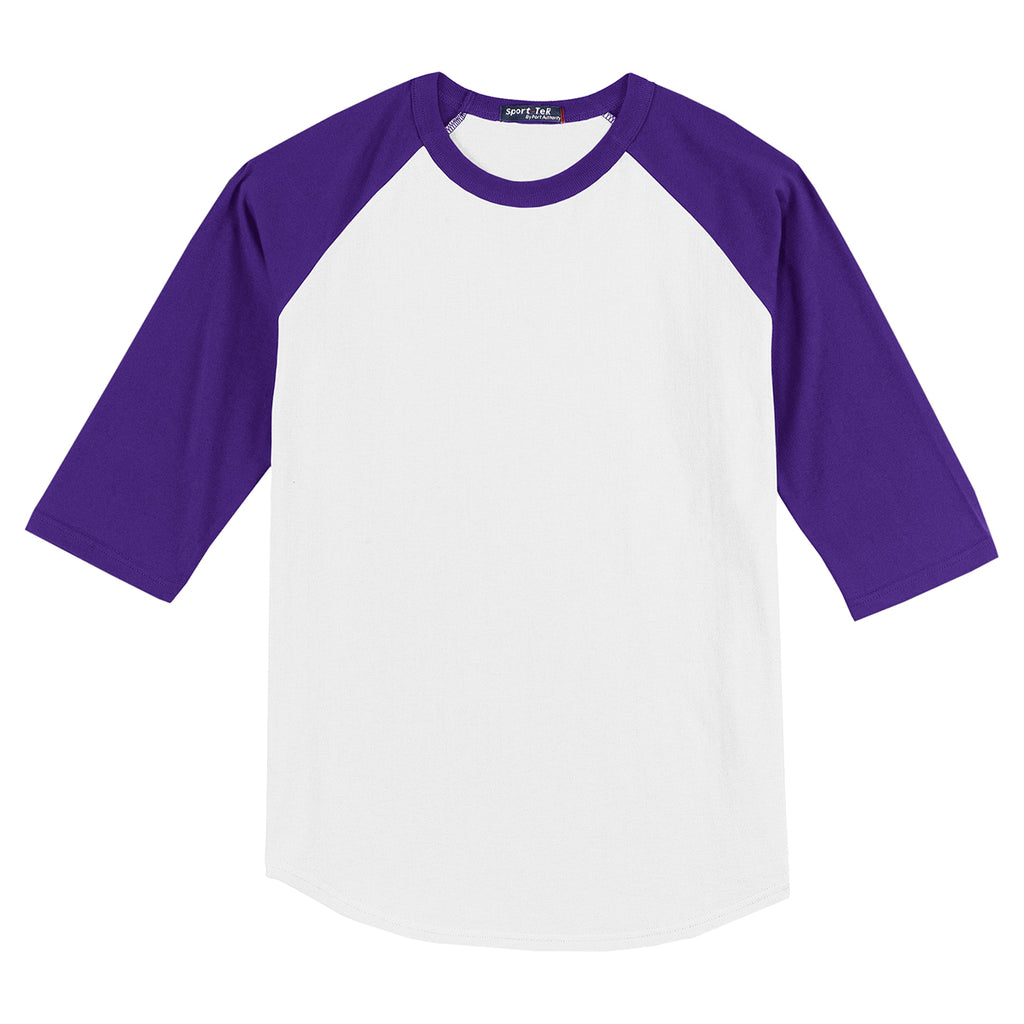 There is a 12 piece minimum on all orders for Sport-Tek t-shirts. This item will be imprinted, not embroidered.Be honest: if there was only one type of upper-body clothing you could bring to a desert island with you, it would be a T-shirt. And it'd probably look something like Sport-Tek Youth White/Purple Colorblock Raglan Jersey. That's especially true for businesses who need to create some business apparel from items that will enhance their corporate brand.