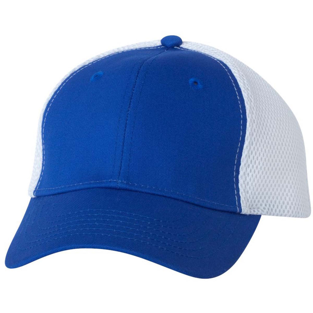 Enjoy your own unique custom look with the Sportsman Royal/White Spacer Mesh Cap in seven color combinations. These cotton, polyester front caps offer a foam mesh back for the ultimate in comfort. Add a corporate embroidery to the crown in the color and design of your choice and use these as part of employee apparel or as headwear gifts for nearly any occasion. The structured, six-panel, mid-profile look has a pre-curved visor with matching undervisor and sewn eyelets. Perfect for a sporting event or just enjoying a day, the hook and loop closure is easy to adjust.Highlights