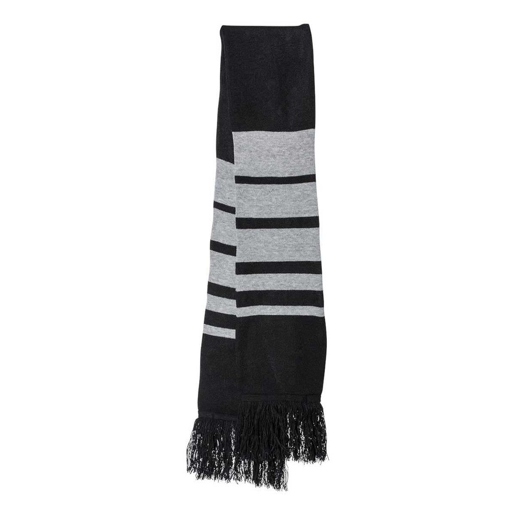 Protect yourself against the harsh weather or make a statement with a custom Sportsman Black/Heather Grey Soccer Scarf. Made of 100% acrylic with a length of 61 inches and width of 7 inches, this scarf comes in a variety of color combinations, bright and bold, all with stripes. Add a custom logo to show support for the home team or a corporate embroidery to use these scarfs as corporate gifts for the holidays or any special occasion. Perfect for sporting events when the weather is unpredictable or to use as headwear when Mother Nature sends a cold blast. Place an order right away to be prepared for whatever comes next!Highlights