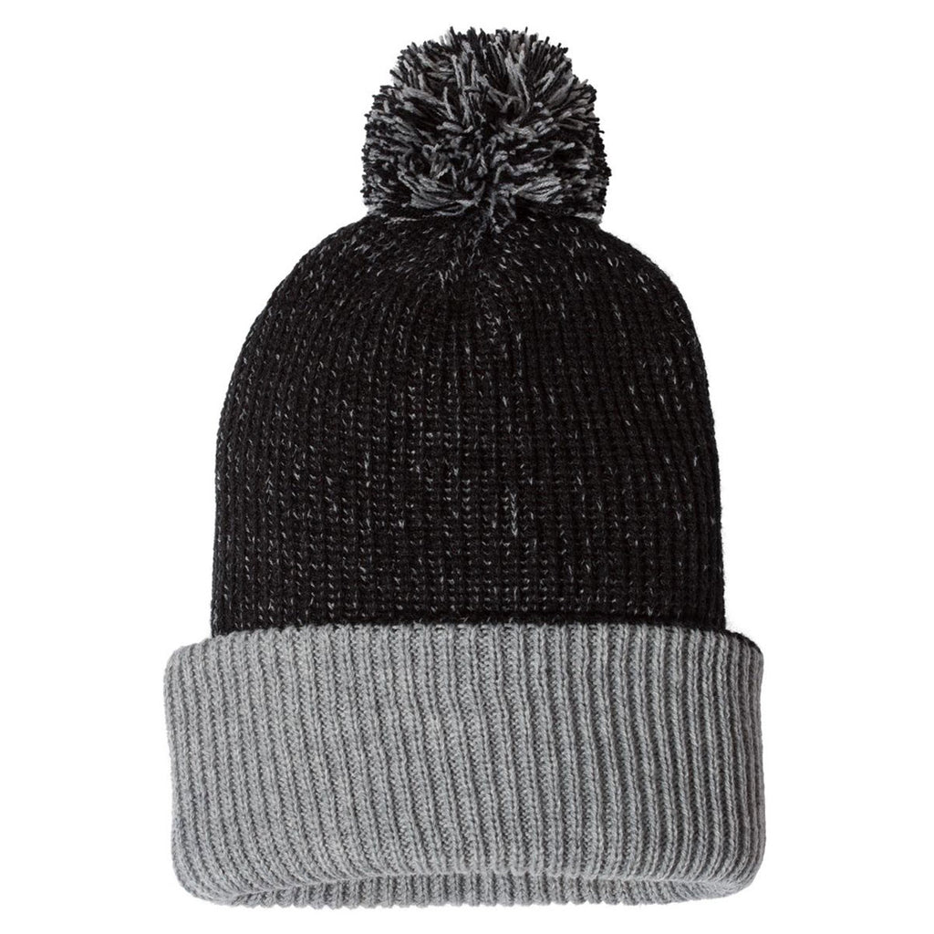 Sportsman Black/Grey 12" Knit Speckled Pom-Pom Beanie