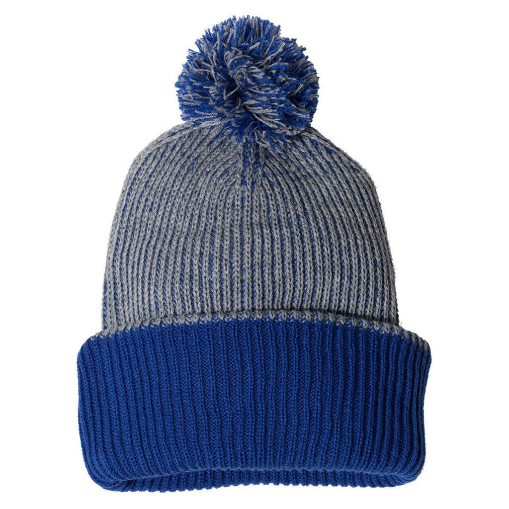 Sportsman Grey/Royal 12" Knit Speckled Pom-Pom Beanie