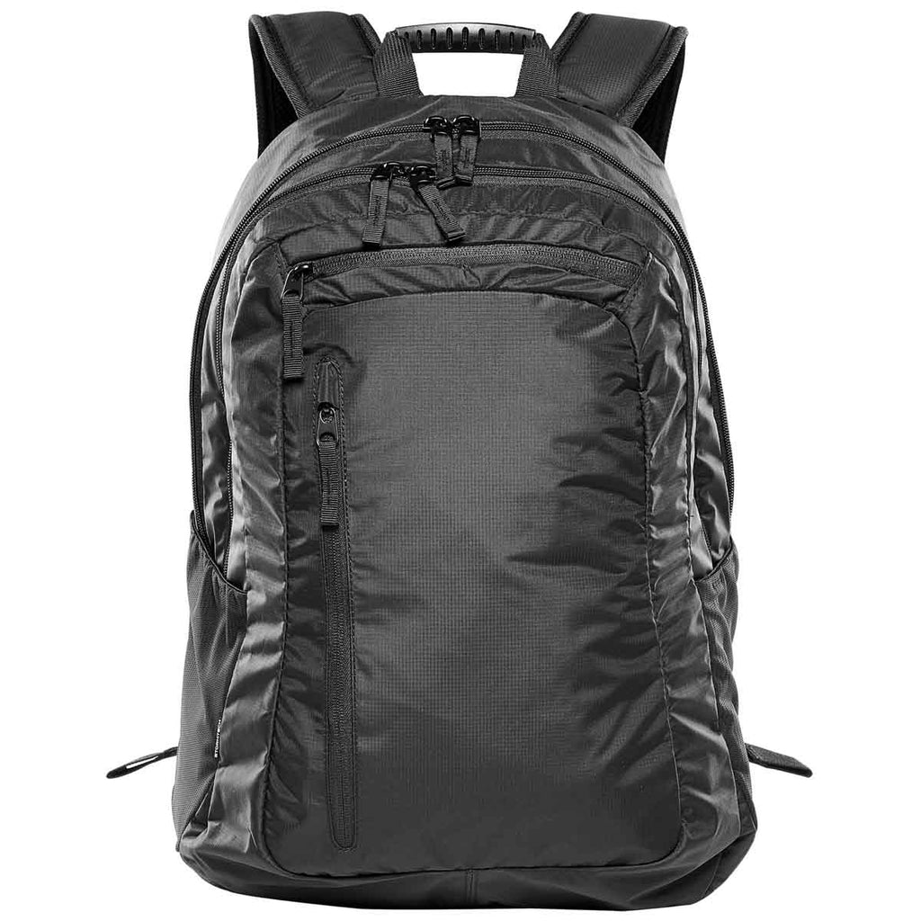 Design a custom logo for the Stormtech Black Cambridge Computer Pack to easily identify your pack whether headed to work, going on a quick trip, or riding the subway each day. Built from hard-wearing nylon ripstop fabric, the Cambridge is compact, yet roomy enough for the essentials on your daily commute. Ideal as an employee gift with a company logo or to add your custom logo to create something for your own logoed apparel line. An easy access, padded laptop compartment with dedicated tablet sleeve keeps your computer safe with RFID blocking and dual side mesh beverage pockets keep drinks at hand. Ergonomic and adjustable shoulder and sternum straps complete the look.Highlights