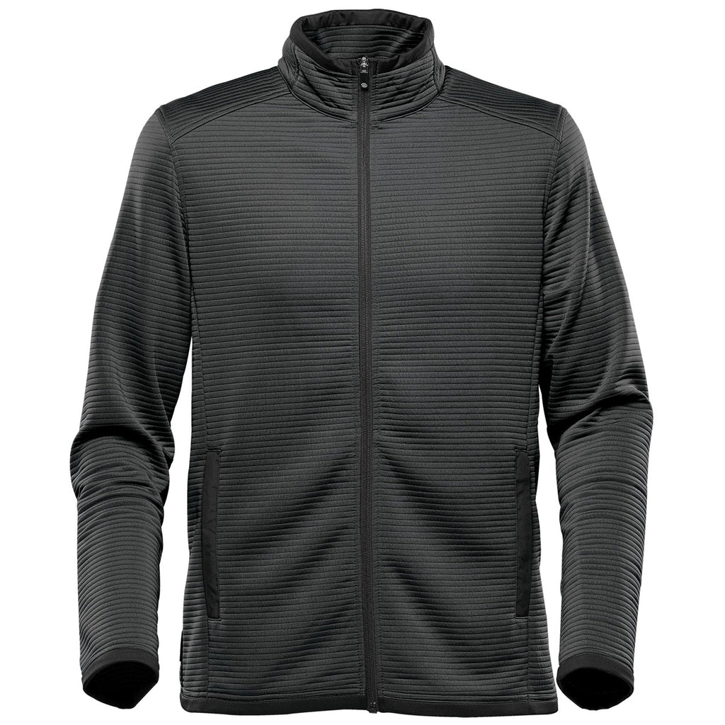 Add embroidery to the Stormtech Men's Black Andorra Jacket to a classically styled look that can easily go from corporate outer wear to a dinner out with friends. The two layer, fleece lined jacket is for the versatile wearer that is comfortable hiking a mountain trail and cruising the city streets. The high collar creates core temperature regulation to keep you warm through a comfortable fit. The kanga pockets keep keys, phone, and other small items at hand. Add a company logo to use as employee apparel that will keep the professional appearance that customers expect. This full front zip design has small, almost quilted lines throughout for a clean appearance.Corresponding Women's Style:Stormtech Women's Black Andorra Jacket