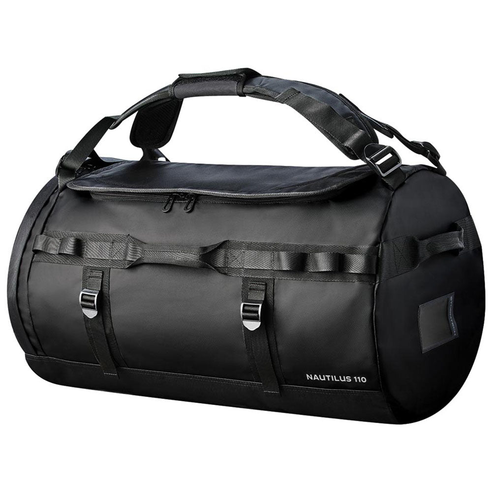Add your custom logo to the Stormtech Black Nautilus Waterproof Duffel 110 for an extra large bag designed for performance. The waterproof duffel is made with reinforced fabric making it great for sporting events travel, weekend trips, or to carry to the gym. Place an order today to make sure you are prepared for your next event.