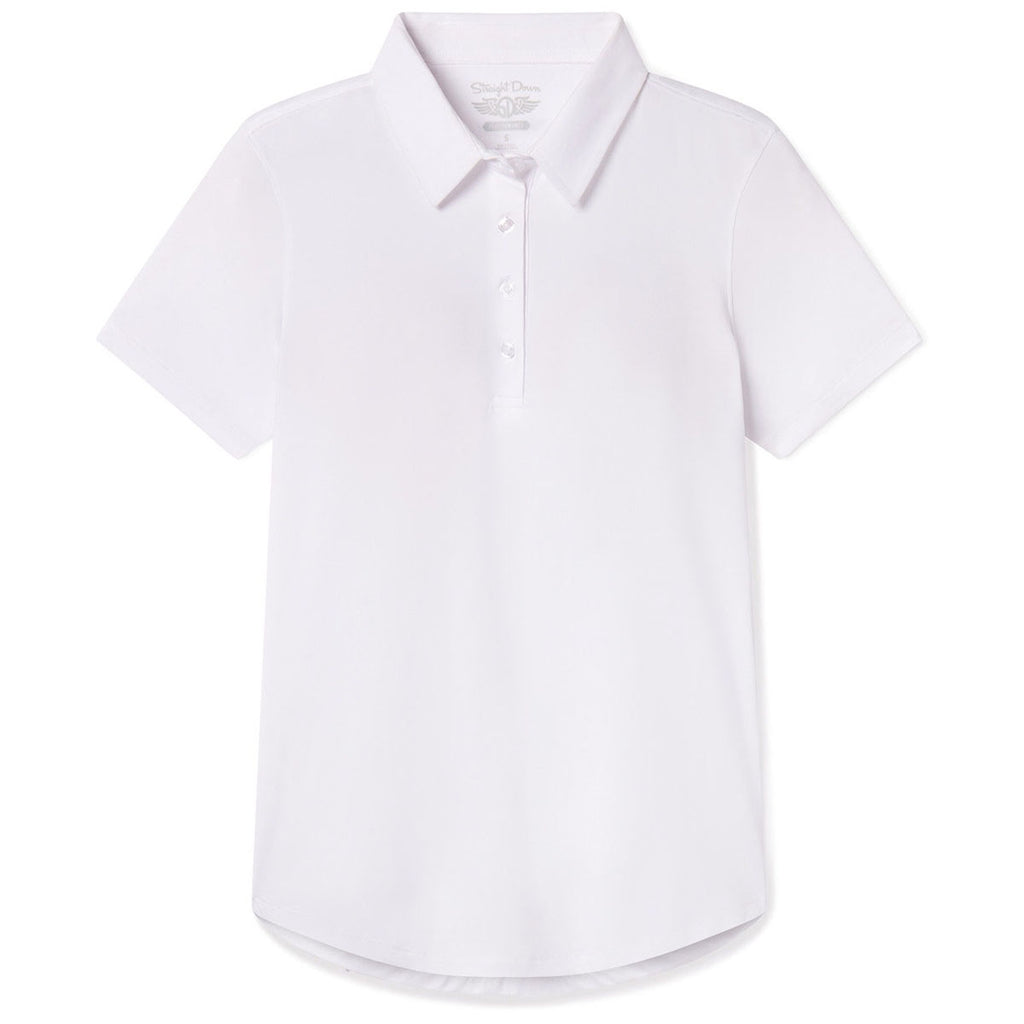 Add a modern staple to your custom women's wear collection with the Straight Down Women's White Abbot 2.0 Polo. Moisture-wicking fabric and stretch construction ensure lasting comfort, while tailored seams offer a flattering silhouette. Stylish and practical, this polo transitions easily from the office to weekend rounds.Highlights