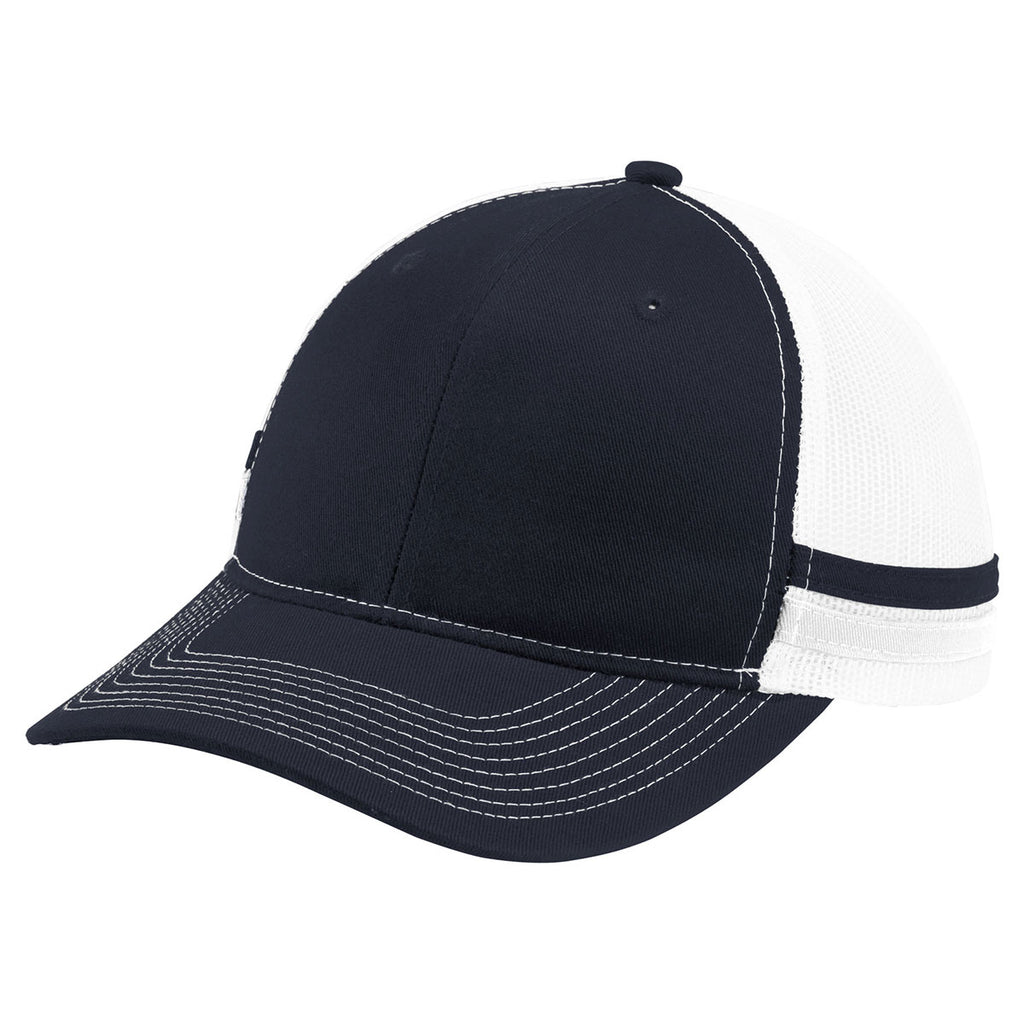 For clothing to give away at company events, turn to the structured look and feel of the Port Authority Rich Navy/White Two-Stripe Snapback Trucker Cap. Designed with double stripe detail to create an old school look, the chic cap features a seven-position adjustable snap that allows every member of your corporate team to discover the optimal fit. The mid profile cap keeps enough of the sun out of your eyes to allow you to track down fly balls hit during corporate softball tournaments. Add a custom logo on the embroidery area to stir interest in your company during business trips.Highlights