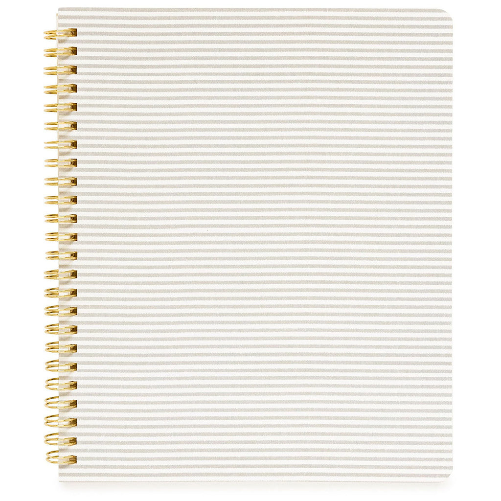 It doesn't get any more stylish than this elegant Sugar Paper Spiral Notebook, Grey Ticking Stripe. Take your office to the next level by providing your employees with a sophisticated, modern notebook that comes complete with your company's custom logo or design. Along with an attractive exterior, it includes 50 blank lined pages.The minimum is 6 units.