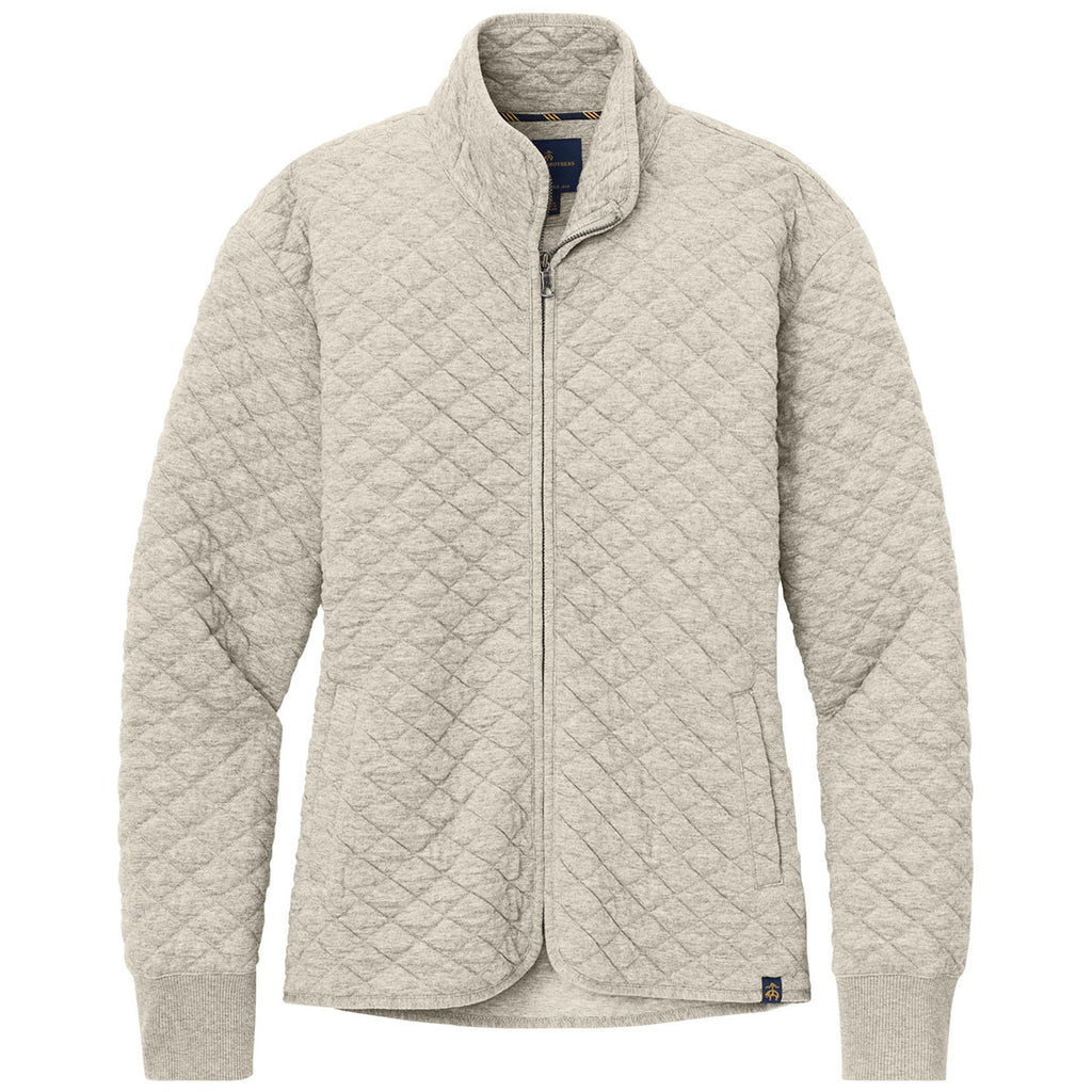 The Brooks Brothers Women's Oatmeal Heather Diamond Quilt Full-Zip offers corporate elegance with custom flair. Its quilted design and tailored fit provide refined style, while lightweight warmth ensures comfort. Embroidered logos appear sophisticated against the fabric, making this jacket ideal for client gifts, executive apparel, or branded events. A polished choice, it balances timeless fashion with professional representation.