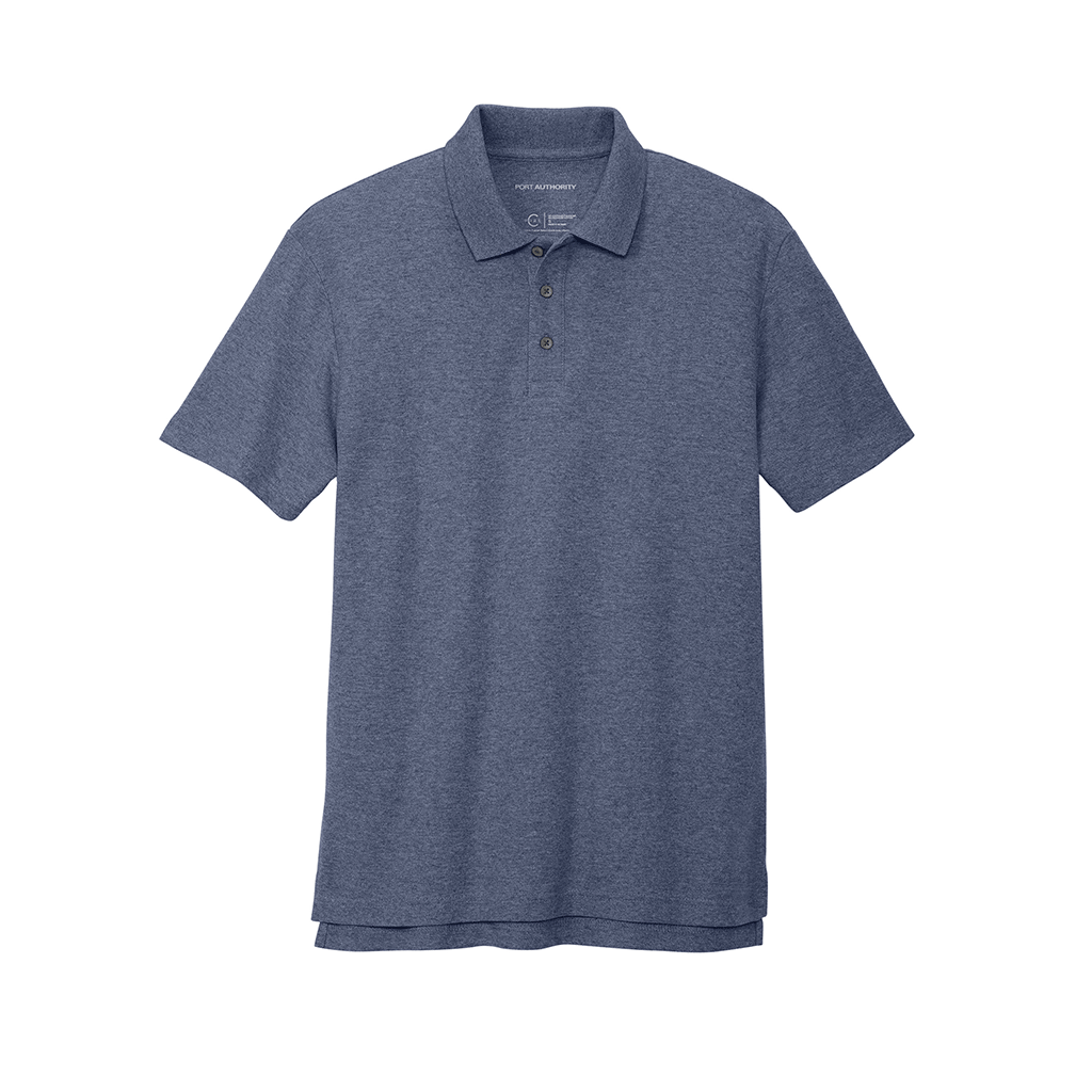 Port Authority Men's Navy Heather Cotton Blend Pique Polo