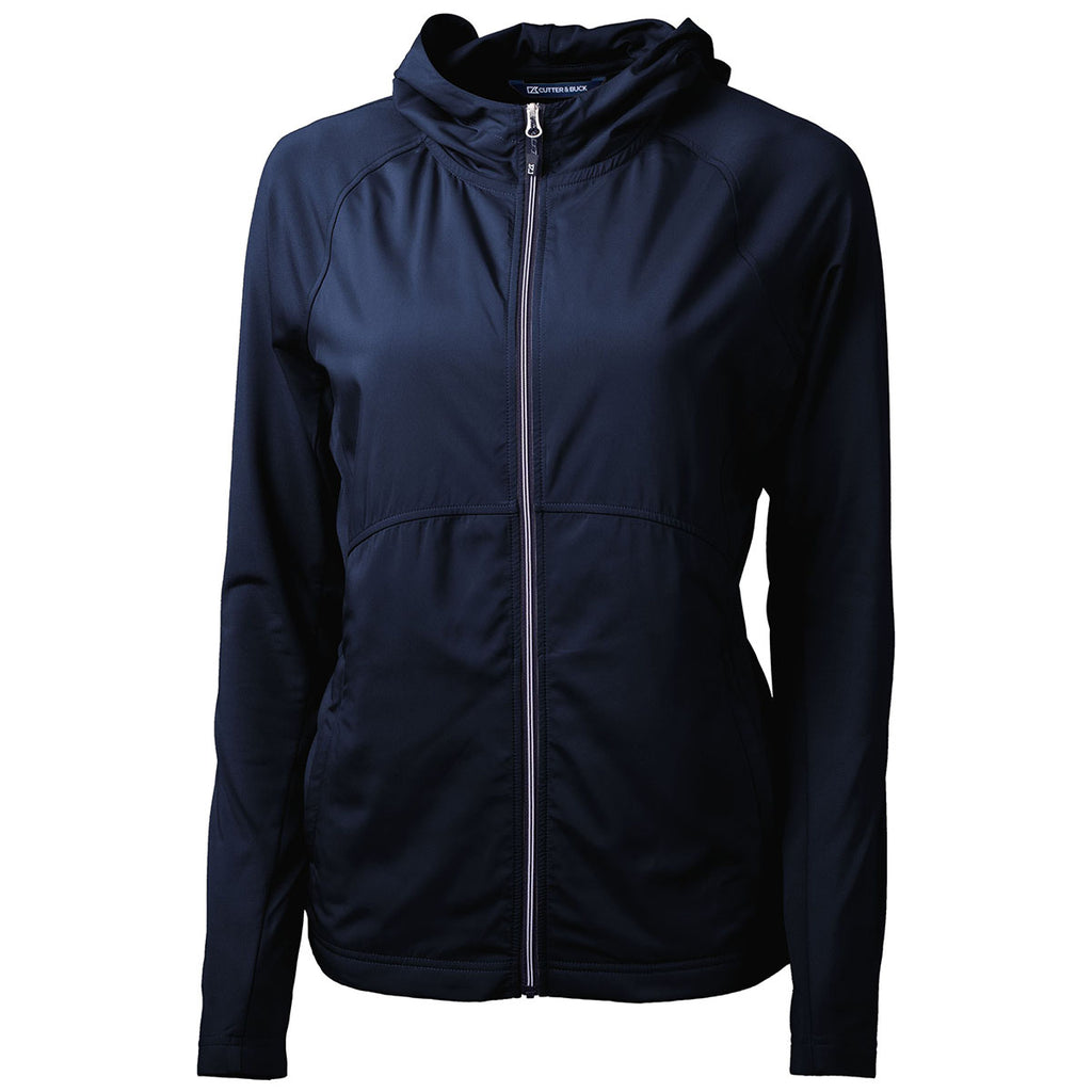 Cutter & Buck Women's Navy Blue Adapt Eco Knit Hybrid Recycled Full Zip Jacket with custom embroidery creates a fun and unique look to meet your daily needs. The sleek jacket made of mostly recycled materials is great for an early morning run or to grab and go when running errands. Easily machine wash the full zip after a workout or hang it with the locker loop to store. Place an order today.Highlights