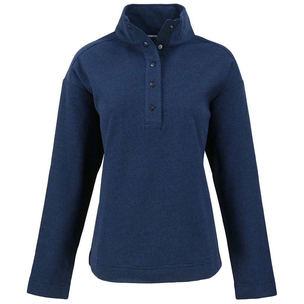 Cutter & Buck Women's Navy Blue Hunts Point Eco Textured Fleece Recycled Snap Pullover