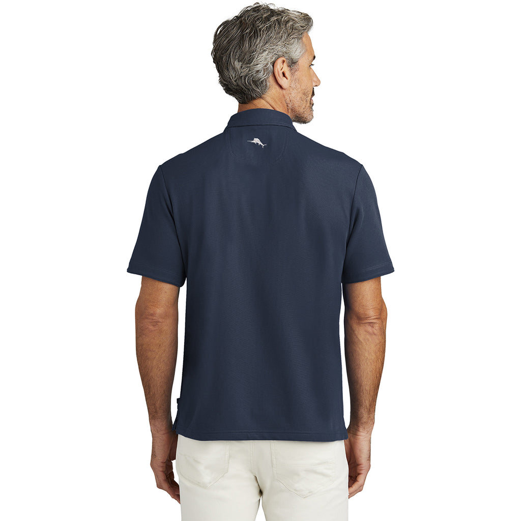 The Tommy Bahama Men's Blue Note 5 O'Clock Polo is made from a luxuriously soft fabric that will keep you comfortable on the course, the beach, or at after-hours drinks. Add your company's custom logo or design to this pique fabric polo to create a professional look that will take your team absolutely anywhere.
