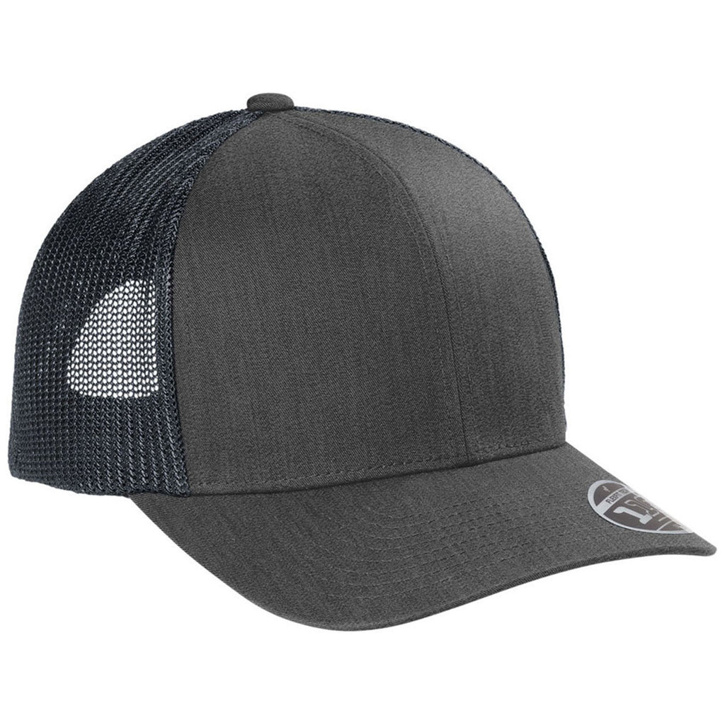 Add embroidery to the TravisMathew Men's Black Heather Cruz Trucker Cap for an updated look on a true classic cap. The polyester, cotton, polyurethane blend creates a structured mid-profile style with typical mesh back in trucker cap style. Flexfit 110 technology allows for a blend of technology and adjustability for a custom fit. A 7-position adjustable snapback creates a one size fits most cap that the majority can enjoy. Add a company logo to offer as employee gifts for nearly any occasion or event. Try out a custom logo to add these to your logoed line and watch as this favorite flies off shelves.