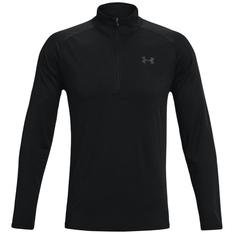 Ideally styled to cover everything from your work to your weekend recreational activities, the custom Under Armour Men's Black Tech 2.0 Half Zip features a look that fits your corporate apparel and athletic apparel. Designed with a new, streamlined fit and shaped hem that'll enhance your look with a sporty vibe. Fabric is treated to meet the Under Armour standard, featuring an ultra-soft texture for a more natural feel. The material also wicks sweat and dries faster than an ordinary shirt. You can even customize the long sleeve shirts to bear your custom logo - this makes the piece perfect for advertising your company or business. Let us know and we'll add your branding to your orders - print will be done via heat transfer to make your logo stand out in professional quality. The personalized apparel can then be used as giveaways for your trade shows and the events that you sponsor.Highlights