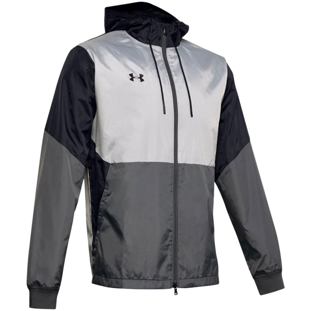 A custom logo will stand out on the Under Armour Men's Black UA Legacy Team Windbreaker. The perfect choice for team events when used as warm-up gear or as employee gifts for a company wide event. Add a company logo and use for an employee event that is meant to bring employees together to support the company and community or add to your personal wardrobe. The loose fitting windbreaker is easy to layer for a quick run or to grab when the weather is questionable. A breathable mesh lining and adjustable hood means you are prepared, rain or shine.Highlights