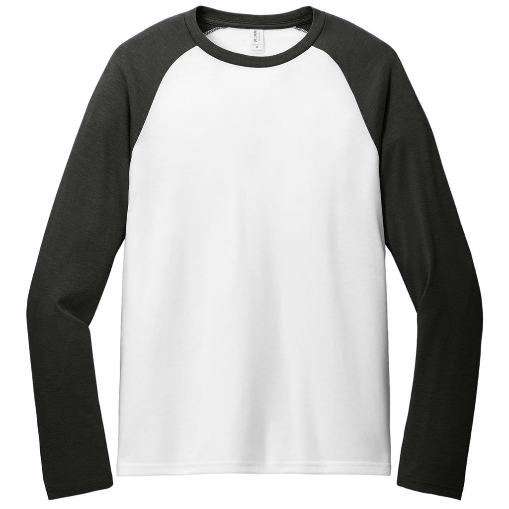 Allmade Unisex Space Black/Bright White Tri-Blend Long Sleeve Colorblock Raglan delivers custom style for corporate teams and eco-conscious consumers alike. Its tri-blend fabric feels incredibly soft while holding shape through repeated wear. With its classic raglan design and color block appeal, this tee transitions seamlessly from branded group apparel to casual weekend wear.