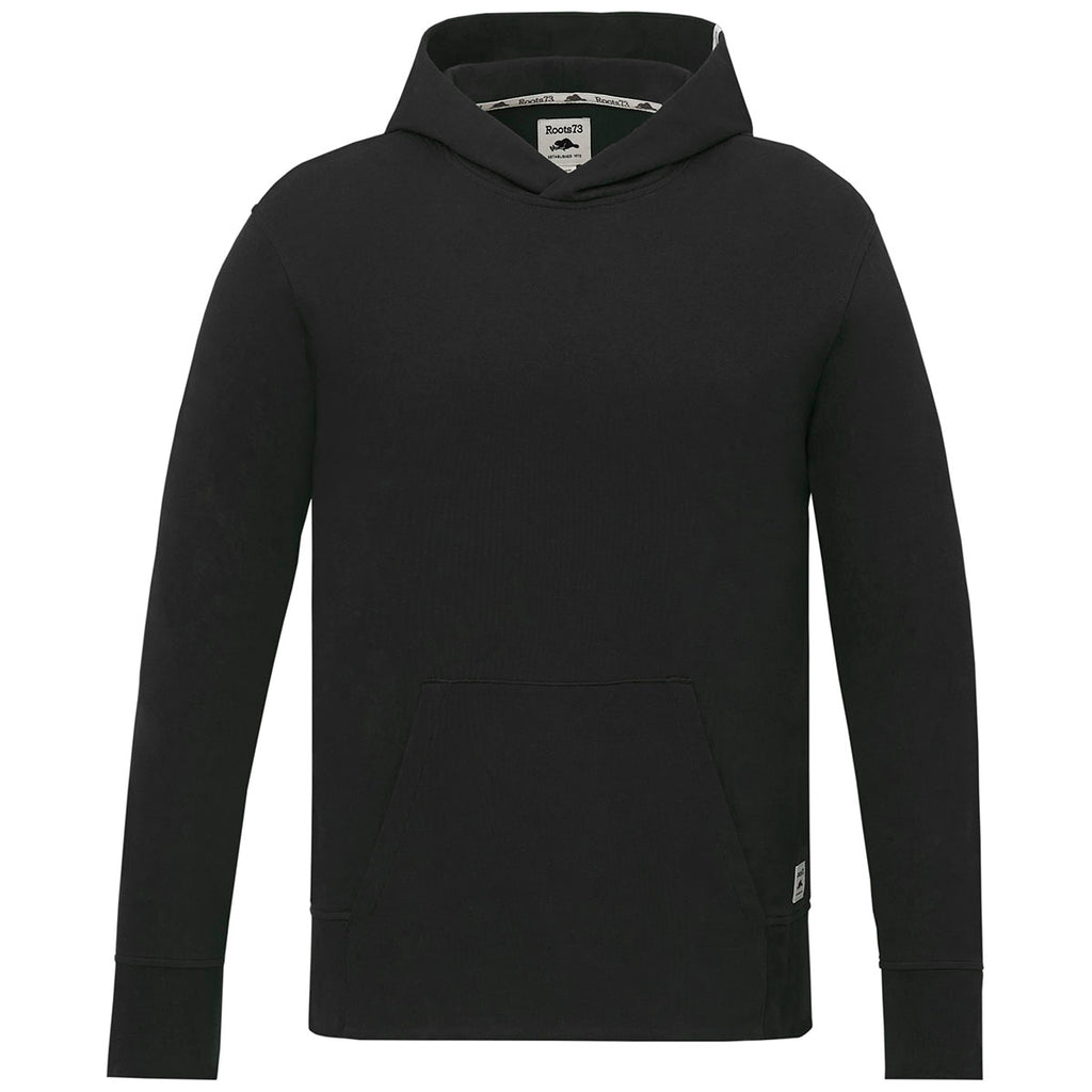 Roots73 Unisex Black Canmore Eco Hoodie with custom embroidery is stylish, comfortable, and eco-friendly. Featuring dropped shoulders, a hood, and a kangaroo pocket, this hoodie is ready for a hard day's work or a relaxing day with friends. Great as company gear or to build your own brand. Place an order today.Highlights