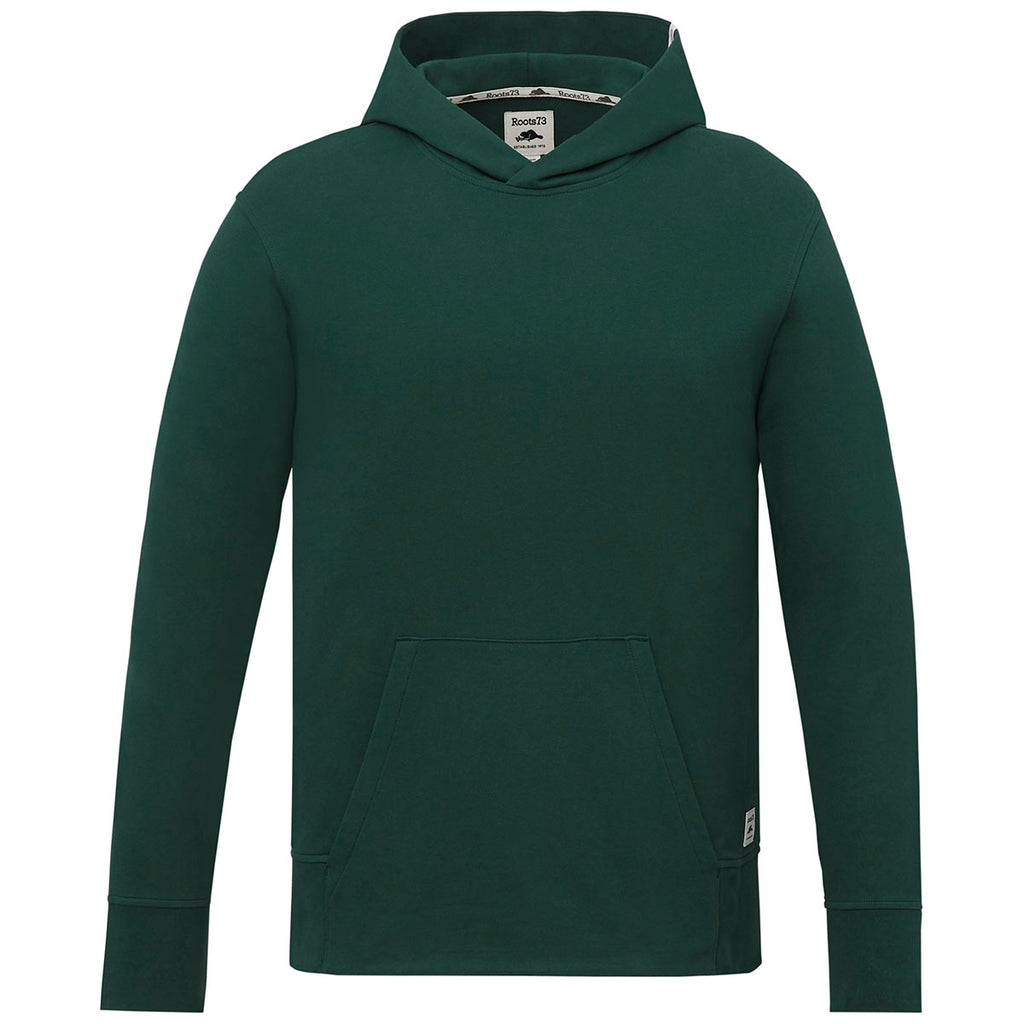 Roots73 Unisex Evergreen Canmore Eco Hoodie with custom embroidery is stylish, comfortable, and eco-friendly. Featuring dropped shoulders, a hood, and a kangaroo pocket, this hoodie is ready for a hard day's work or a relaxing day with friends. Great as company gear or to build your own brand. Place an order today.Highlights