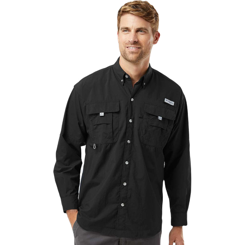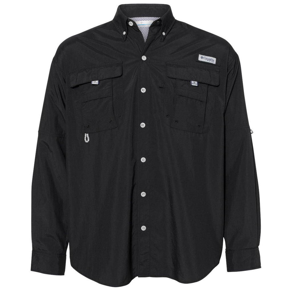 Dress up your look with a custom Columbia Men's Black PFG Bahama Long Sleeve Shirt. This stylish button-down is also durable and has Tactel nylon and sun protection. Whether you are heading out fishing in at the lake and need the built-in rod holder or looking for something that is tough for the jobsite, this is the best choice.This product cannot ship outside of the United States.