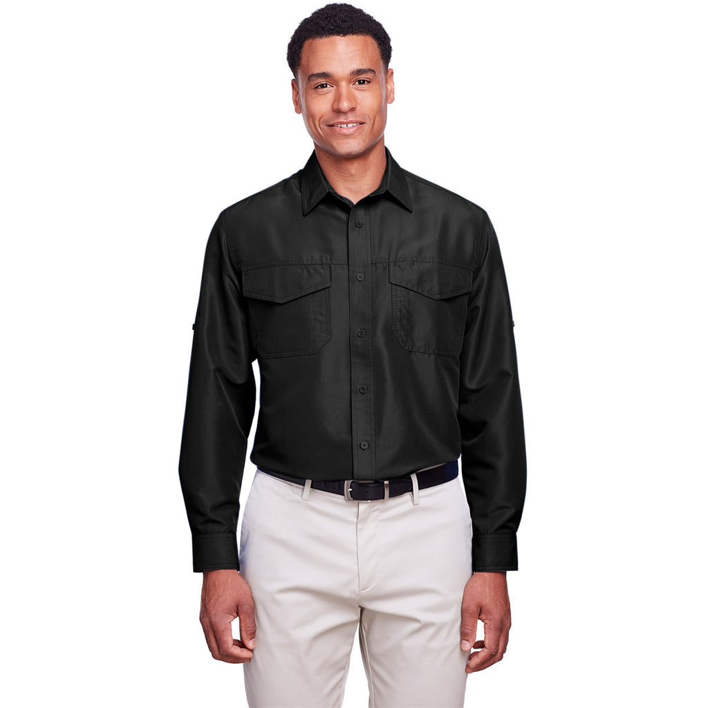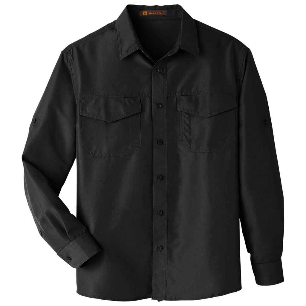Harriton Men's Black Key West Long-Sleeve Performance Staff Shirt