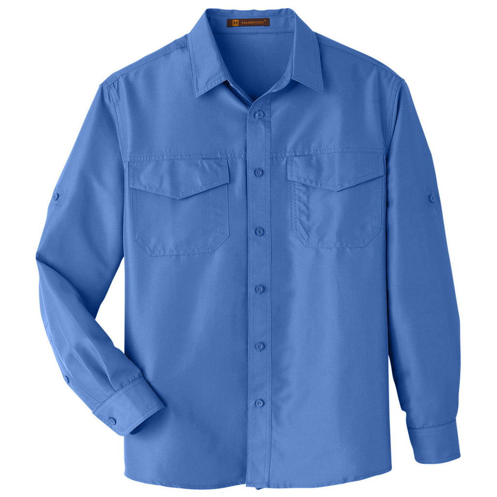 Harriton Men's Pool Blue Key West Long-Sleeve Performance Staff Shirt