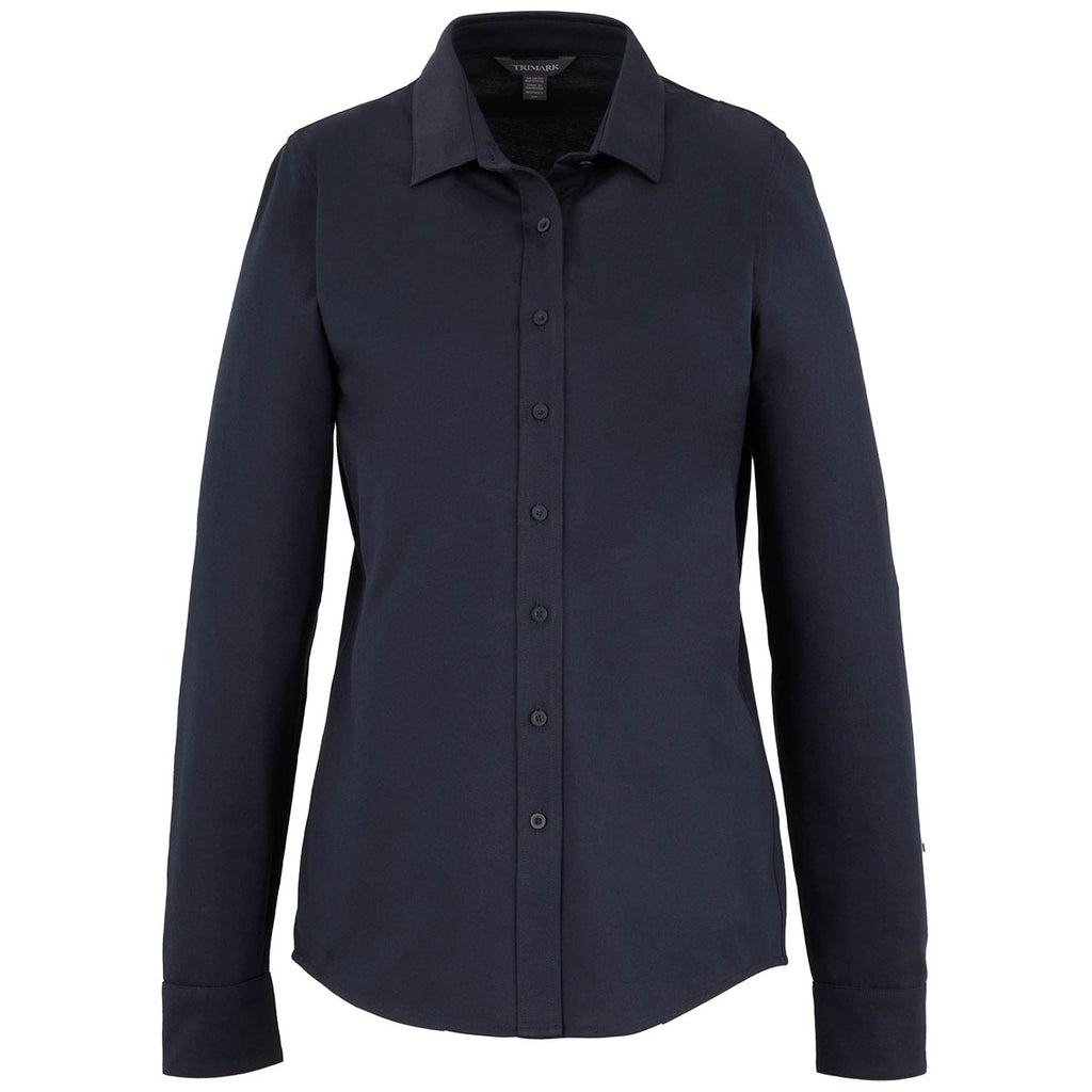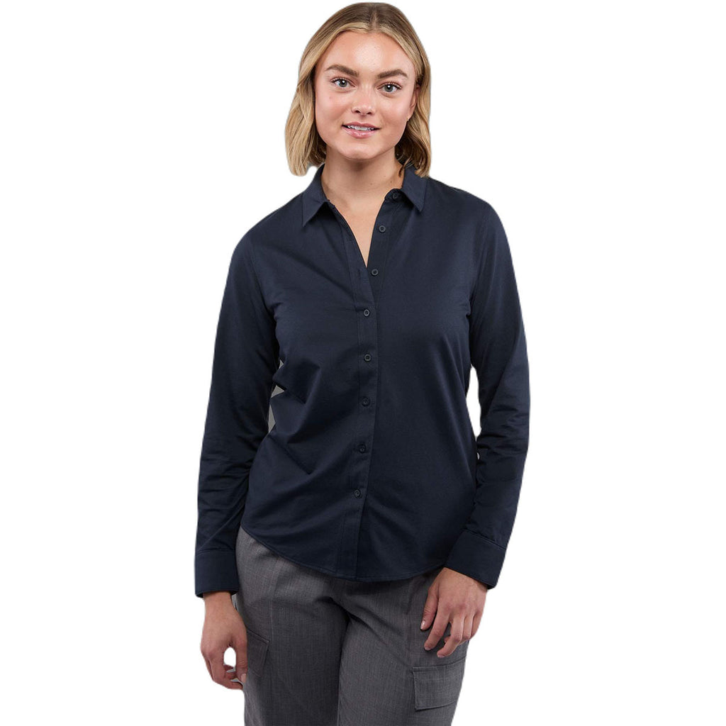 Elevate Women's Navy TATRA Eco Knit Long Sleeve Button Up Shirt