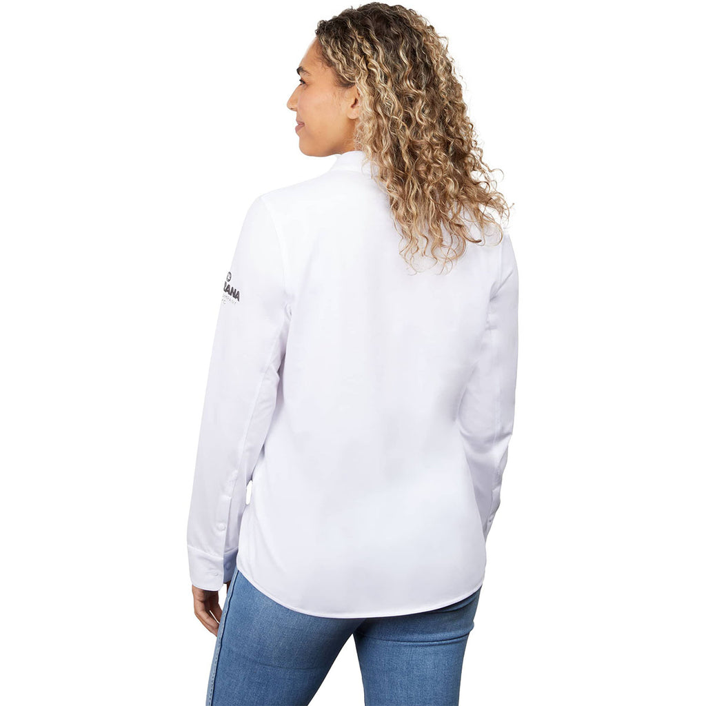 Add your corporate logo for the Elevate Women's White TATRA Eco Knit Long Sleeve Button Up Shirt to outfit yourself and your team in style. Whether used as office apparel, server wear, or for special occasions, these long-sleeve shirts are sleek, durable, and comfortable. Resistant to snagging, fading, UV, and piling, this is a true must-have for your business.Corresponding Men's Style: Elevate Men's White TATRA Eco Knit Long Sleeve Button Up Shirt
