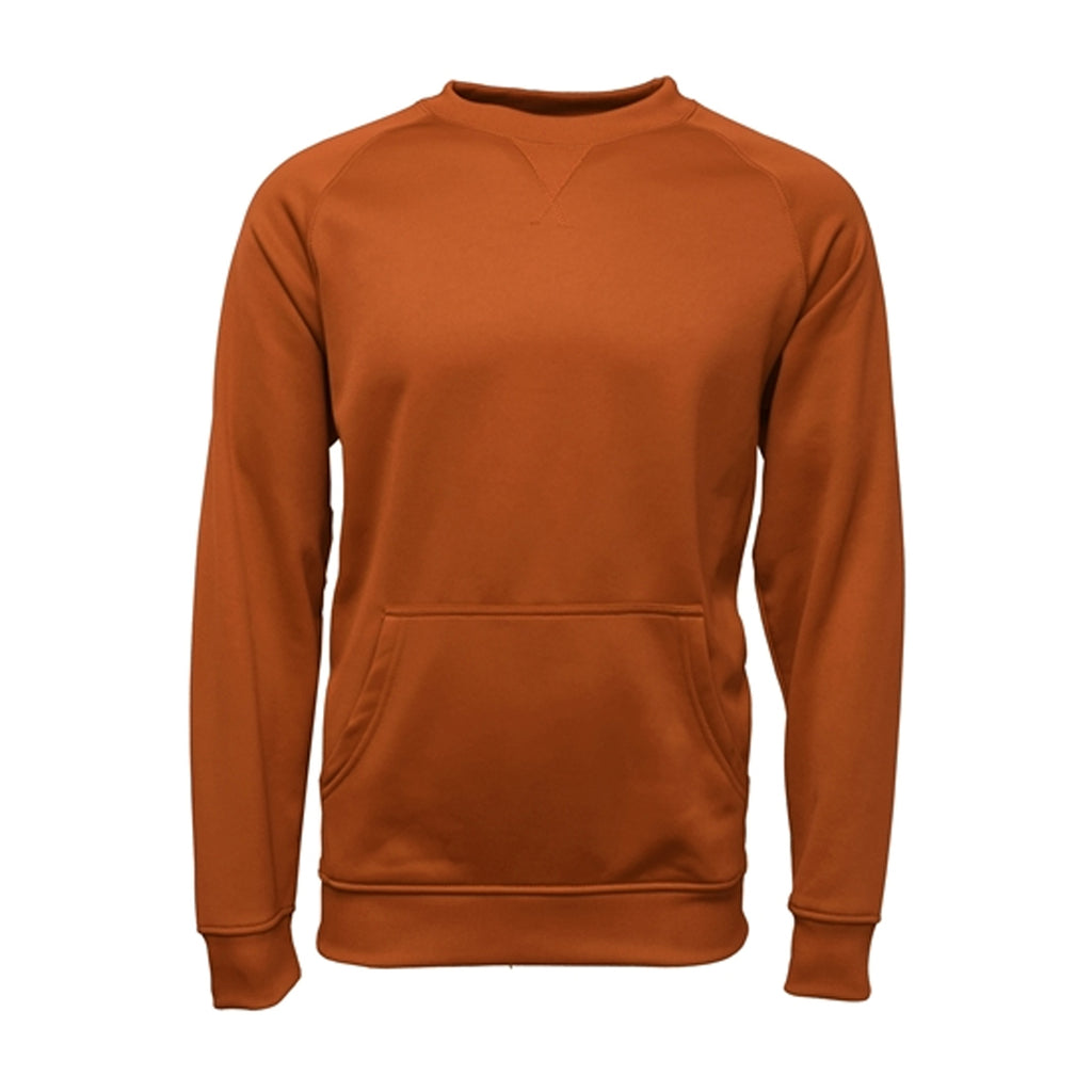 When you want a traditional sweatshirt that is appropriate for both men and women, the BAW Texas Orange Crewneck Fleece Sweatshirt is your answer. Place your company's logo across the front and know that it will be noticed right away. This raglan sleeve style is polyester with stitching around the crew neck, banded cuffs and banded bottom hem. There is also stitching around the front pouch pocket. It is available in many colors and sizes range from S to 4X. Top quality can be seen from top to bottom.Highlights