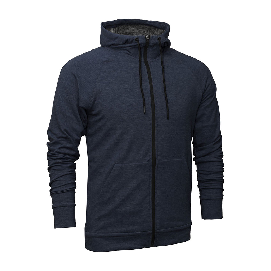 The BAW Heather Navy Tri Blend Full Zip will really make your custom logo stand out. Not just because it's your logo, but also because you a placed it on a much-wanted garment. Most colors are made of rayon, polyester and spandex. This means the jacket will move with you and never stretch out of shape. It is full-zip with a scuba neck and best of all it has a fleece hoodie. It comes in XS to 4X. Both men and women will stay cozy wearing your logo!Highlights