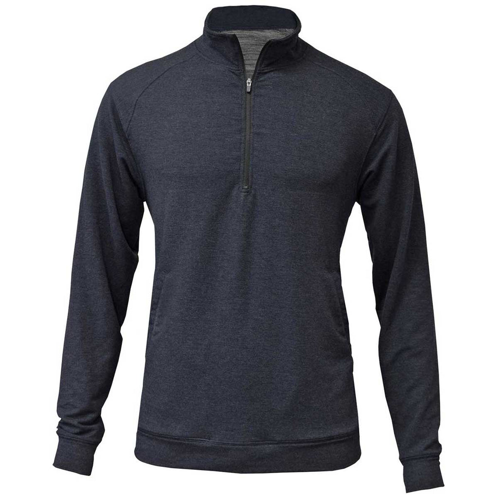 The BAW Men's Heather Navy Tri-Blend Quarter Zip provides warmth and style all in one fashionable 1/4 zip top. Available in five classic colors, the tri-blend 1/4 zip shirt includes fabulous features such as a 100% Thermo Tek polyester material, breathable fabric with moisture-wicking capabilities, anti-bacterial attributes, UPF 25 protection, set-in sleeve, side pockets, and self-fabric cuffs and hem. When you add your embroidery logo to the shirt, the end result is a company shirt perfect for handing out at upcoming events or as employee apparel.Highlights