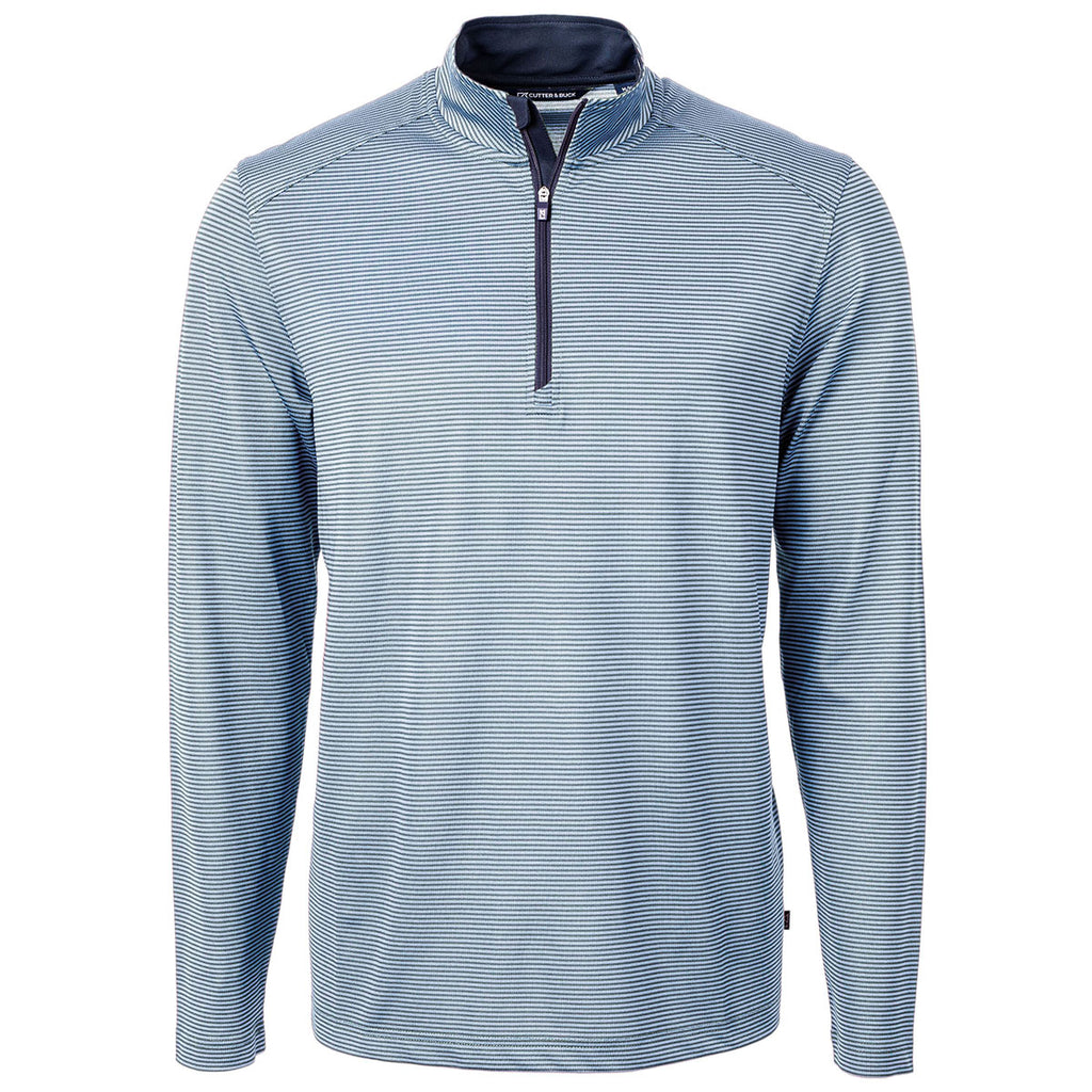 Cutter & Buck Men's Atlas/Navy Blue Virtue Eco Pique Micro Strip Recycled Quarter Zip