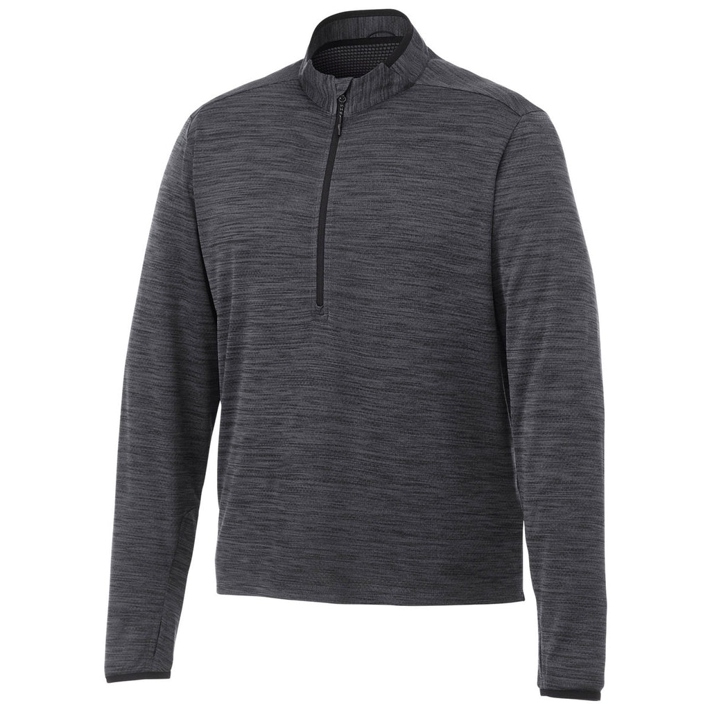 Add a company logo to the Elevate Men's Heather Dark Charcoal Mather Knit Half Zip to use as a corporate uniform that is easy to wear and care for while keeping the look professional. Ideal for those who have to work in different homes, this half zip is easy to layer over another shirt while being easily identifiable by clients. The fabric is moisture wicking and breathable to keep you cool and comfortable, but has a chin guard to hold in warmth when the weather is unpredictable. Snag resistance is perfect for daily wear even when moving around or working.Corresponding Women's Style:Elevate Women's Heather Dark Charcoal Mather Knit Half Zip