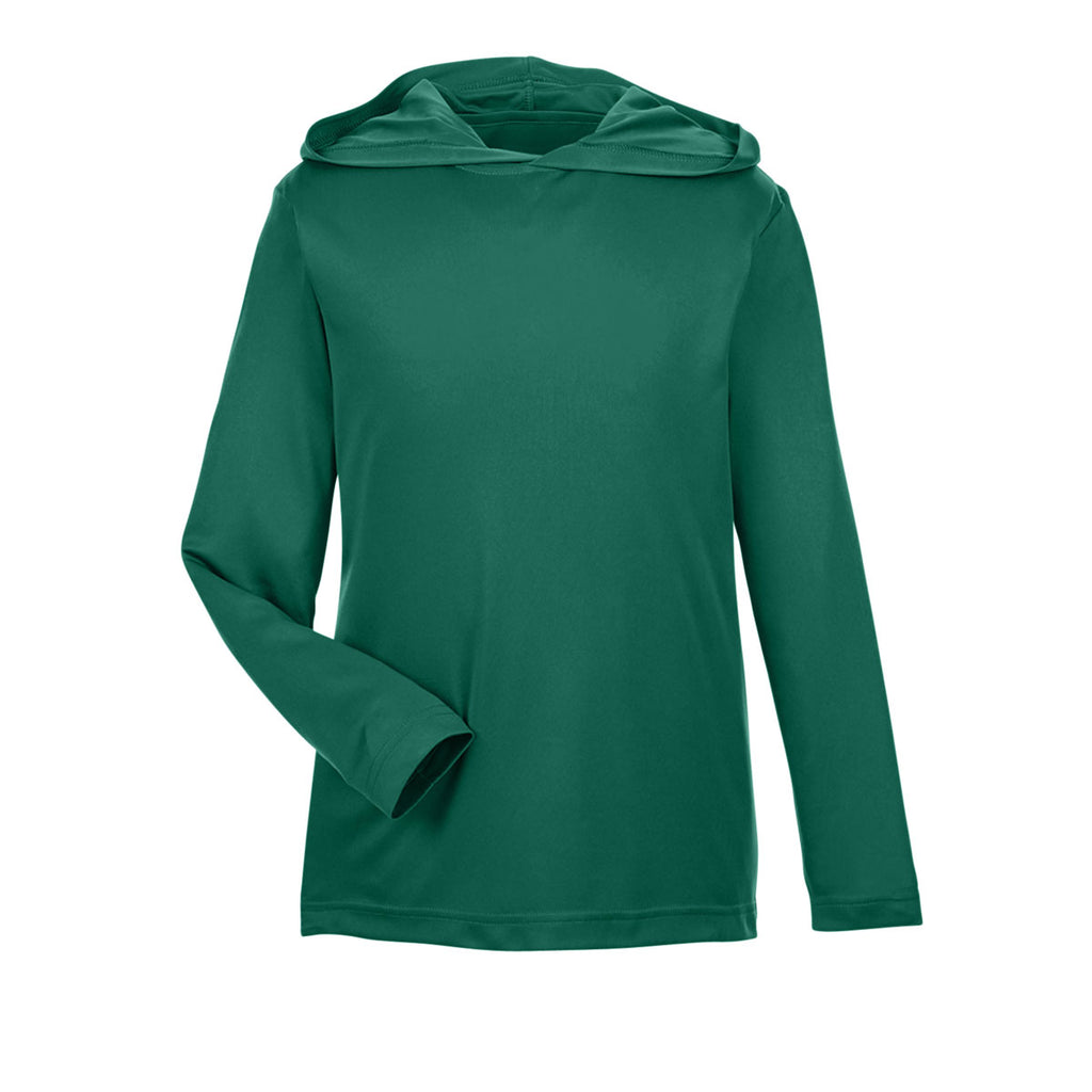 High fashion performance rules the day when you order the custom printed Team 365 Youth Sport Forest Zone Performance Hoodie. The attached hood comes with a draw cord that produces the most comfortable fit. Rugged polyester interlock refuses to succumb to the pounding and stretching of the fabric from the participation in high-energy sports. Moisture wicking properties keep kids dry throughout recreational activities. Cationic dyes increase the brightness of the colors used to design the durable hoodie. Attach your corporate logo to reach company sales goals. With a logo, you build trust with customer prospects at industry conventions.Highlights
