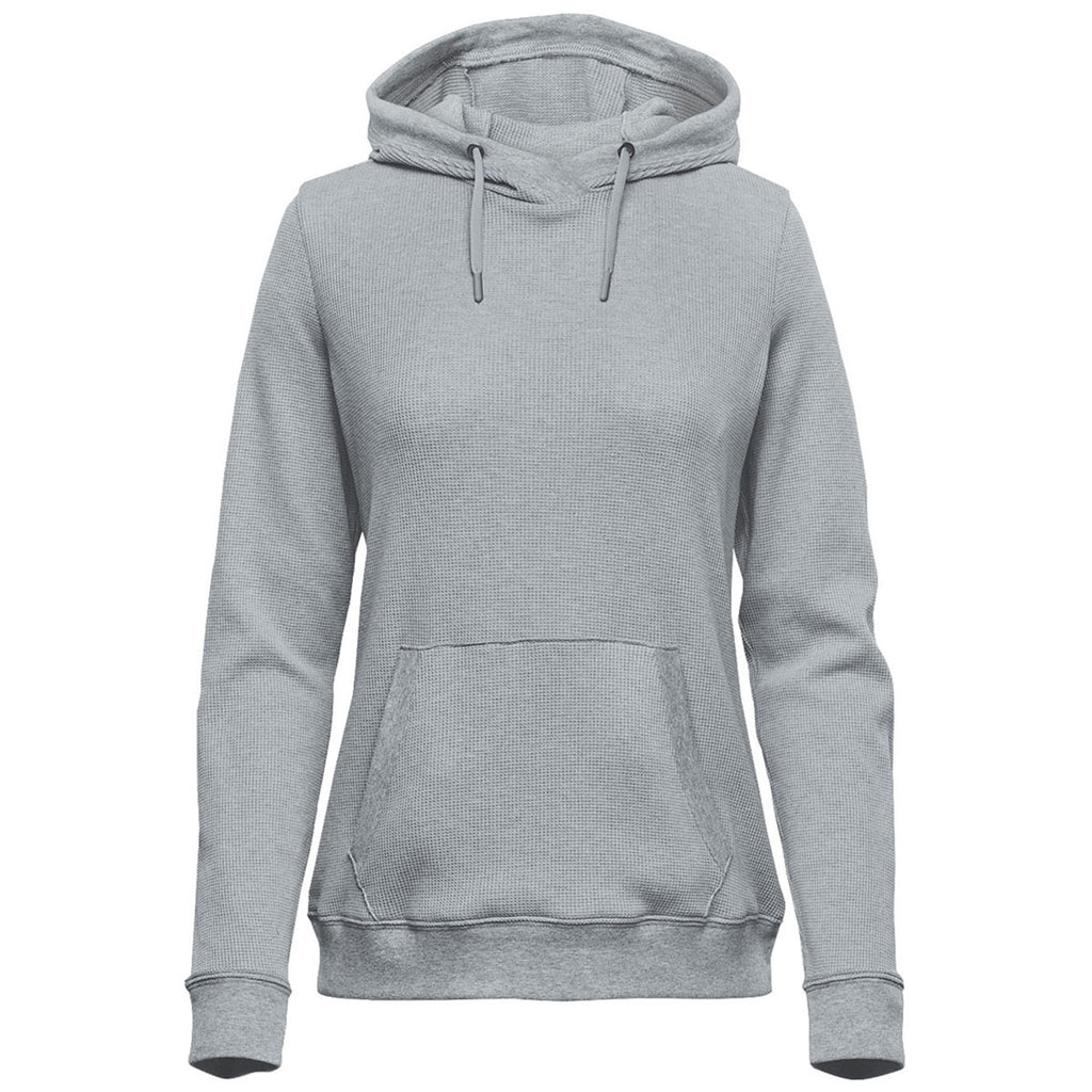 Design your own custom embroidery for the Stormtech Women's Granite Heather Ashburn Pullover Hoody. This crossover hoody is made from sustainably sourced materials for superior softness and durability. It is ideal for working out, running errands, or cuddling up on the couch. Wear alone or layer to create an overall look.Corresponding Men's Style: Stormtech Men's Granite Heather Ashburn Pullover Hoody