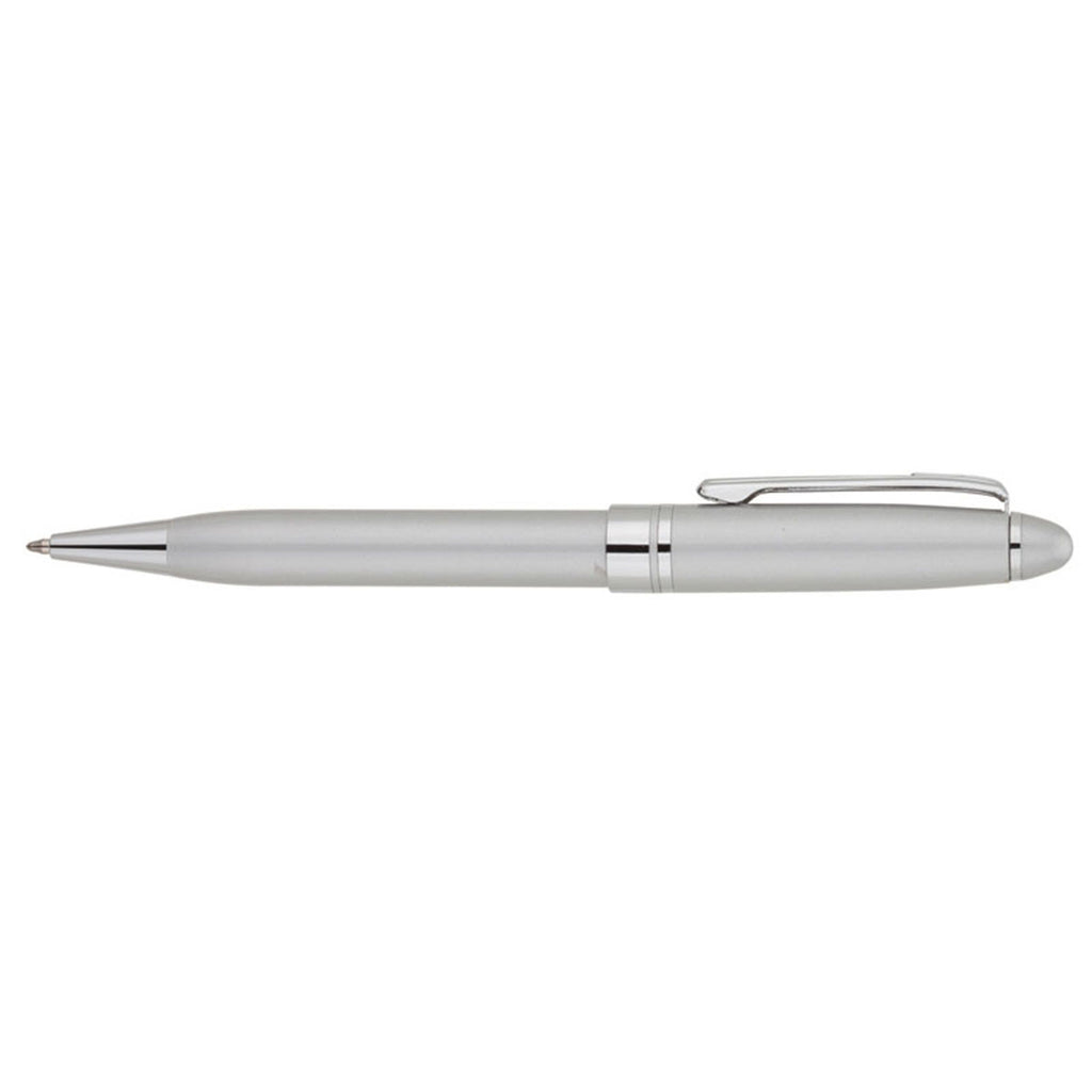 A classic everyday writing staple, the Valumark Silver Dulce Ballpoint Pen is for anyone with a penchant for fine stationery. This pen can be engraved with the brand logo or company name for your very own custom flare. It works with a twist-action mechanism and boasts a brass built with chrome accents.