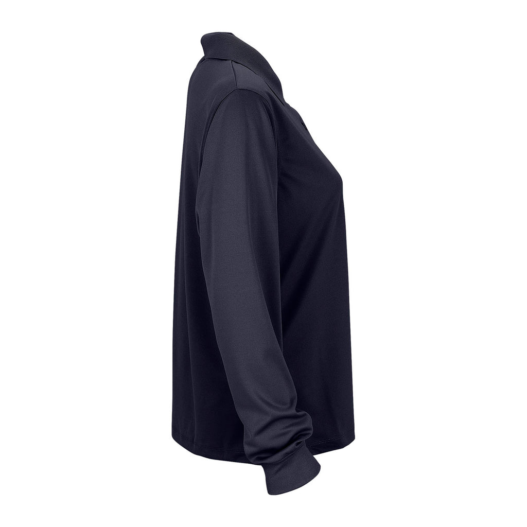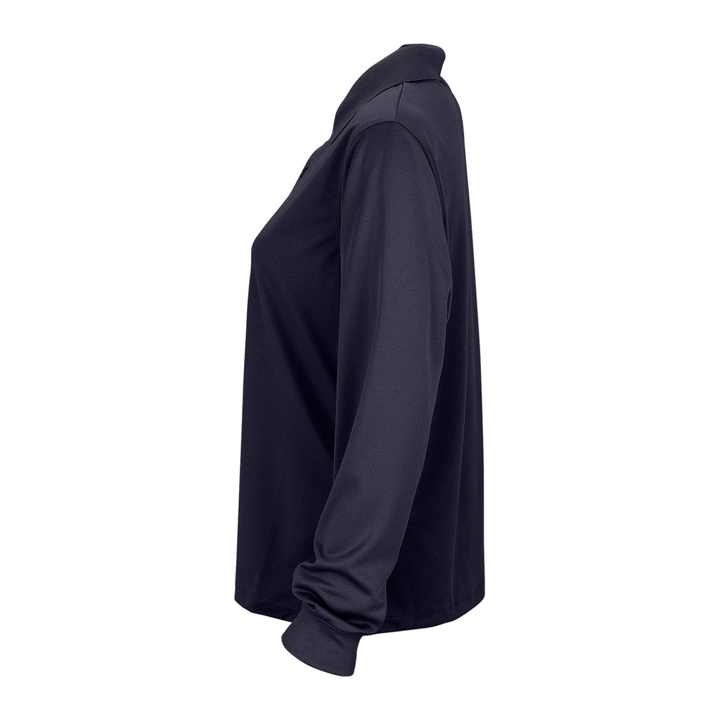 Vantage Women's Navy Omega Long Sleeve Solid Mesh Tech Polo